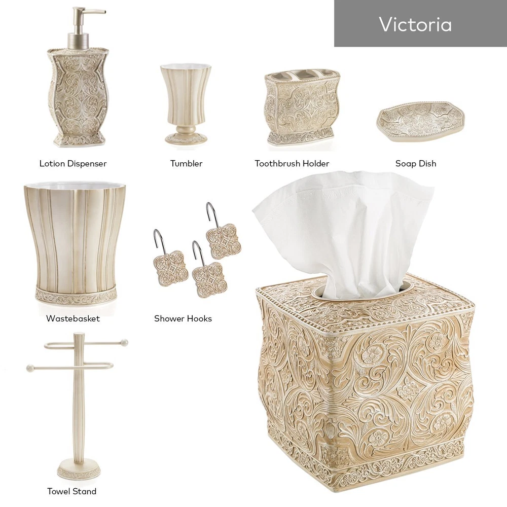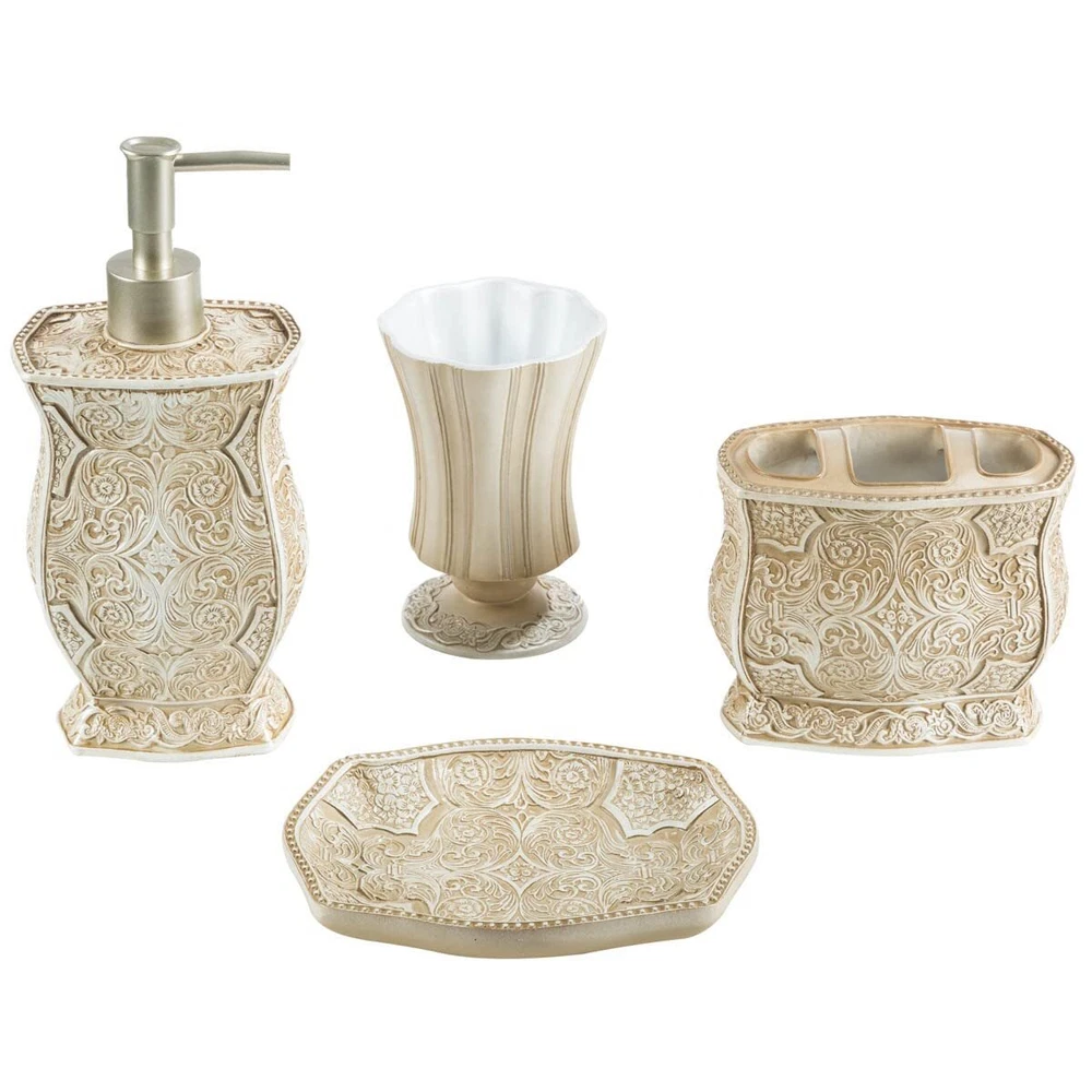 Textured Finishing; The Victoria Bathroom Sets Scroll Pattern And Swirling Floral Motifs Provides A Finish With A Textured Feel That Not Only Looks Classy; But Also Makes For Non-slip Grip. Handling Your Bathroom Decor Sets Accessories Is Much More Comfortable Even With Slippery Or Wet Hands. Durable: All Pieces Of This Bathroom Soap Dispenser Set Are Made Using High-quality Heavy Resin Material Which Never Rusts For Enhanced Durability & Functionally. Dual Purpose; While The Bathroom Sets Accessories Brings Functional Convenience To Your Bathroom, It Is Also A Great Addition To Its Interior Décor; Easily Turn The Tumbler Into A Holder Of Lovely Seasonal Flowers. Bathroom Accessories Sets Complete: Includes Everything You Need For Personal Grooming In The Bathroom. Includes 7.75” X 4.25”x 4.25” Lotion/soap Dispenser Fitted With A High Quality Pump, A 4.25” X 4” X 2.25” Toothbrush Holder That Can Also Hold Toothpaste, 4.5” X 3” X 3” Tumbler And A 1” X 5.75” X 3.75” Soap Dish. Amazing Gift Idea: Bundle This 4 Piece Bathroom Decor Set With Other Items Of The Victoria Bathroom Accessories Collection To Create A Unique Housewarming Or Hostess Gift That Leaves A Lasting Impression. Click 'add To Cart’ Now!