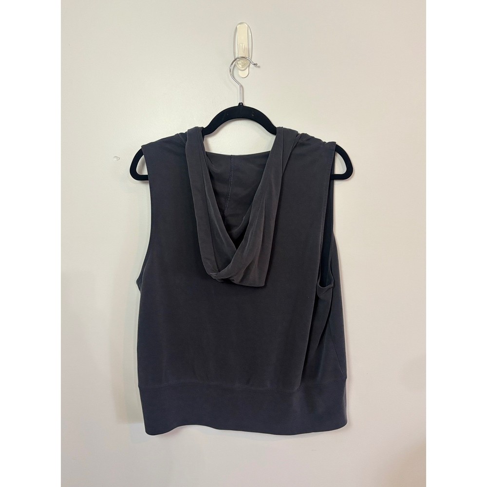 Effortless style meets ultimate comfort in this Victoria Sport hooded vest. The drapey silhouette cascades beautifully, offering a relaxed yet flattering fit that moves with you. This vest features a deep V neckline and attached hood, making it perfect for layering over your favorite workout gear or wearing on its own for a casual athleisure look. The subtle gray color adds a touch of sophistication, while the soft, breathable fabric ensures all-day comfort. A minor flaw is present, as captured in the listing's photos, but is barely noticeable and does not impact wearability. Ideal for yoga sessions, running errands, or simply lounging at home, this vest is a versatile addition to your wardrobe. Color: Gray Department: Women Type: Tank Style: Pullover Features: Hooded, Breathable, Stretch, Athleisure Neckline: V-Neck Performance/Activity: Yoga, Gym & Training, Running & Jogging, Cross Training Sleeve Length: Sleeveless Fit: Regular Closure: Pullover Character: Sporty, Athletic, Casual, Workout, Yoga Imperfections pictured, small snag Keywords: Victoria Sport, sleeveless hoodie, hooded vest, athletic vest, workout top, athleisure, gray vest, yoga vest, casual vest, tank top, sleeveless top, activewear, gym wear