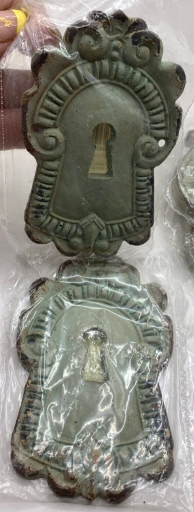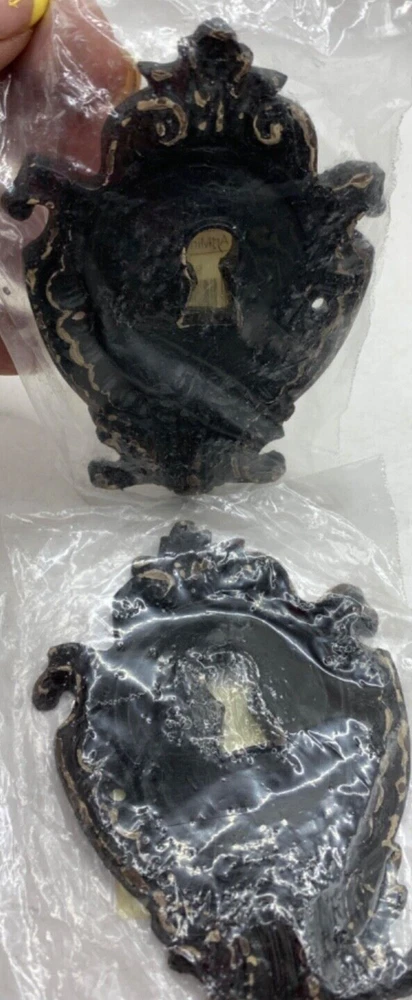 This is a set of 14 decorative resin shapes designed to add visual interest to furniture, collages, wall art -- many uses throughout the house and crafting projects. 1 of the decorative plaques is cast iron metal. The shapes include door locks, padlocks, filigrees -- all have a very Victorian gingerbread style. These are frequently used to add accents to furniture, drawer fronts, wood doors, tables, etc.