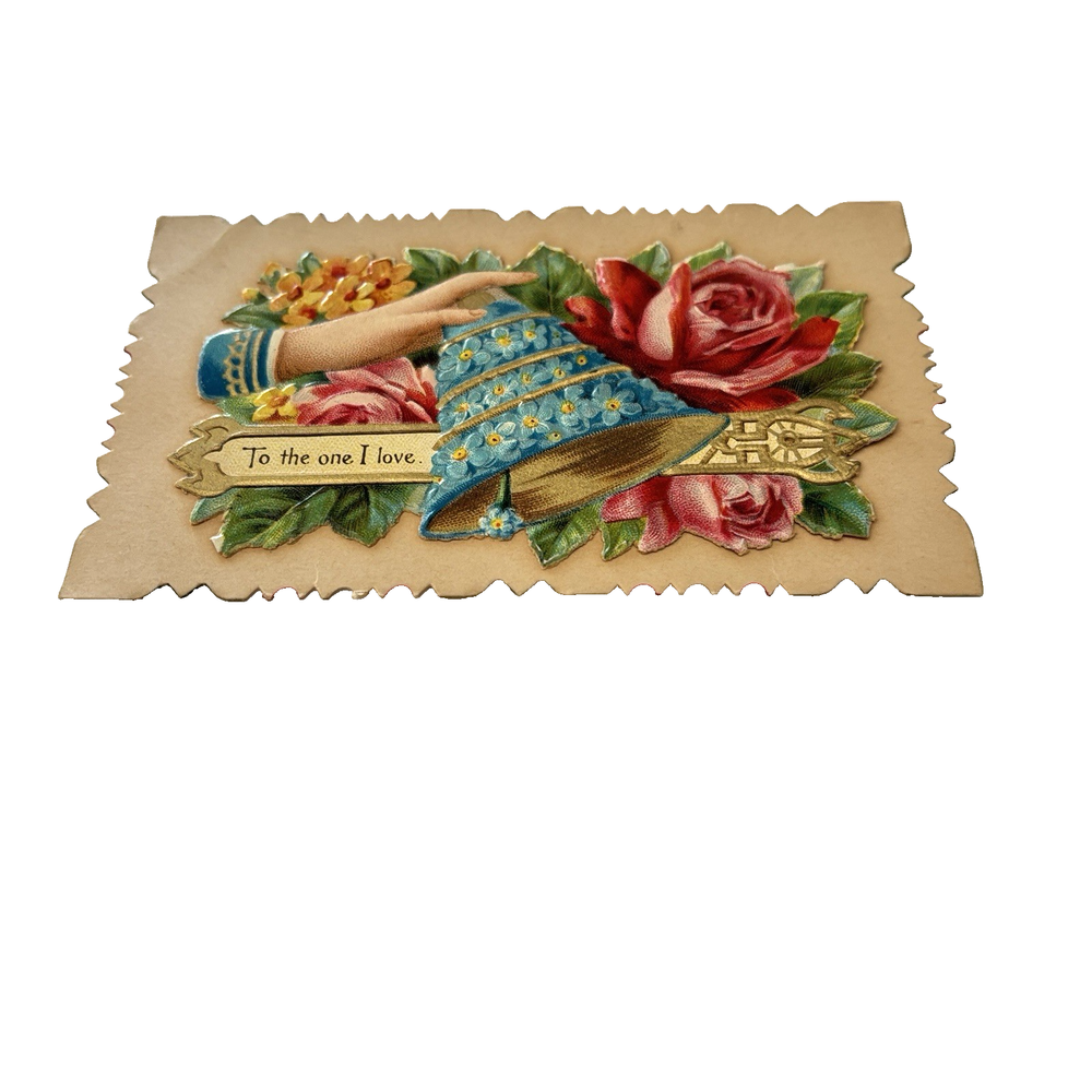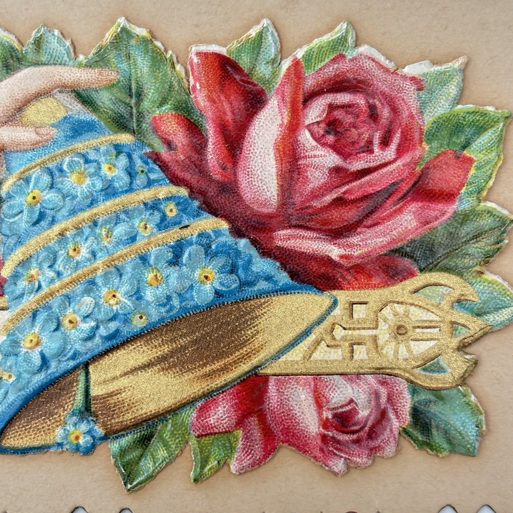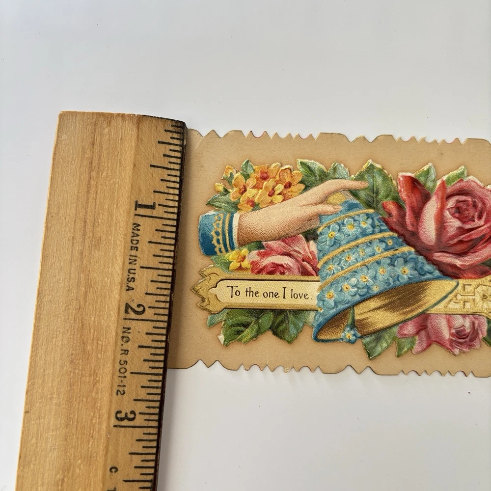 Victorian Calling Card Die-Cut Hand Bell Roses 1800s Ephemera Greeting Paper