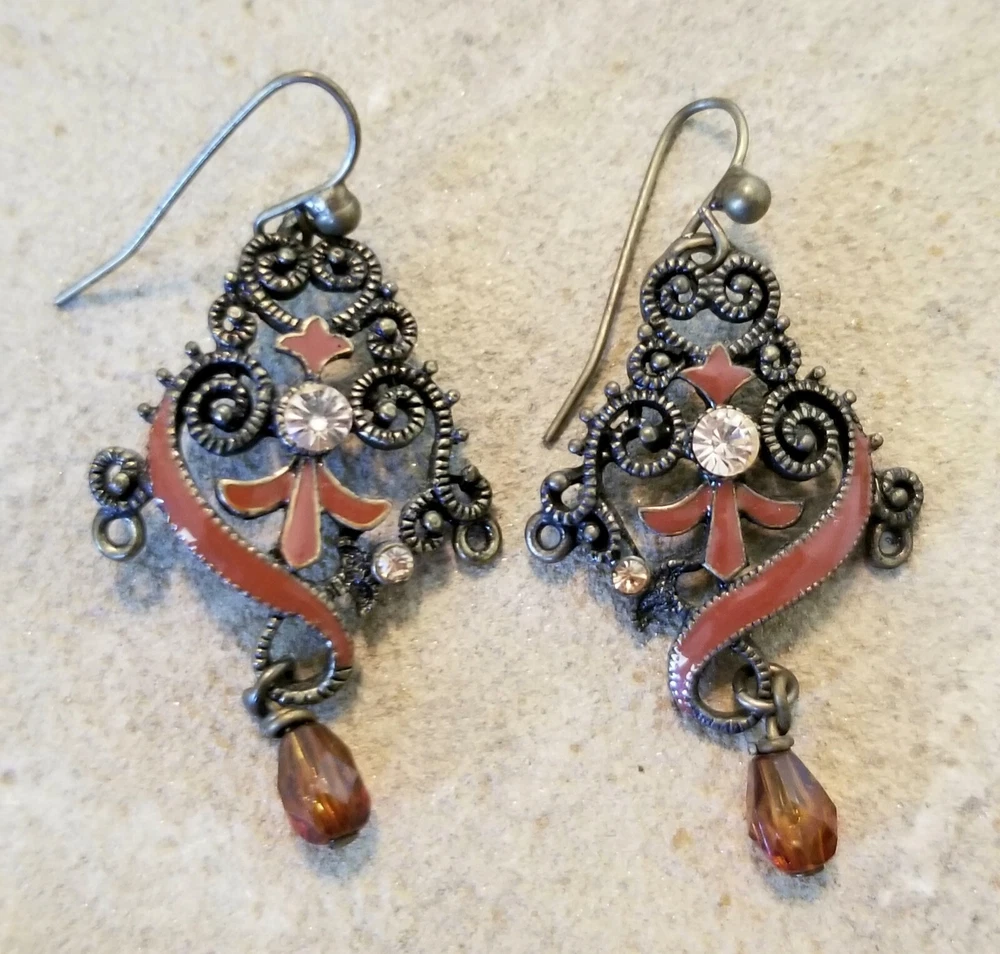 This Vintage Victorian-inspired 18" adj. necklace design has a bohemian feel, making it a great addition to any fashion style. This set is perfect for those who appreciate unique and vintage pieces matching earrings about 1.5"