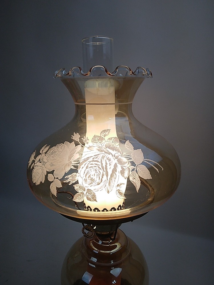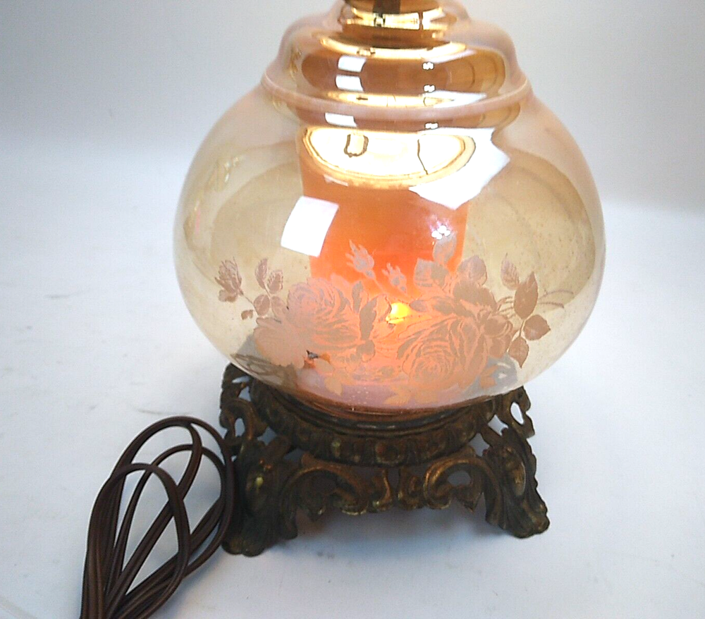 Double Globe Hurricane Rose Parlor Lamp Victorian Gone With the Wind Amber 20" 1960's We source items from many different venues. We inspect, clean, photograph, measure and weigh before listing. If there are flaws, they are photographed and described in the Condition Description section of the listing Return Policy We do accept 30-day returns, if there is an issue with an item, please let us know ASAP so we can do our best to resolve it. Items sent Priority and Ground advantage Mail include insurance. It is the buyer`s responsibility to file an insurance claim for any damage occurred during shipping, Items are stored in a clean and non-smoking environment. International returns are not accepted. Thank you for doing business with us. 6036