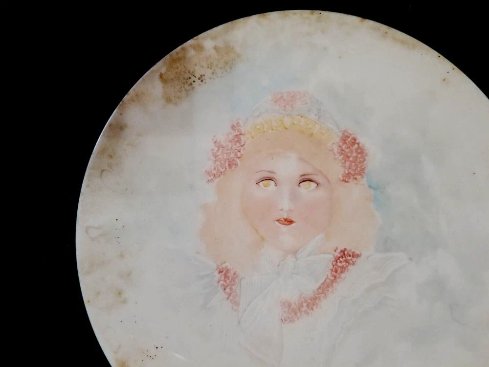 Victorian Girl w Flower Wreath Crown 10" Hand Painted Hostess Gift Artist Plate DESCRIPTION: Offered is an original hand painted artist plate. Features a portrait of a young girl in a white Victorian dress wearing a spring flower crown. Perfect as wall decor or as a student sampler. MEASUREMENT: 10.25" porcelain plate. CONDITION: Porcelain in excellent estate condition. No chips or cracks. POSTAGE: Buyer pays USPS ground advantage mail for 1.8 pounds packaged weight.