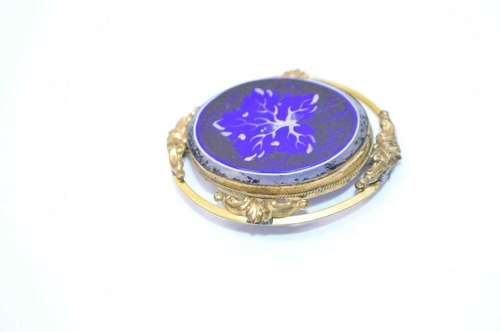 Victorian Gold Filled Blue White Glass Hand Painted Large Brooch C Clasp Please see pics for condition 2 by 1 & 5/8"