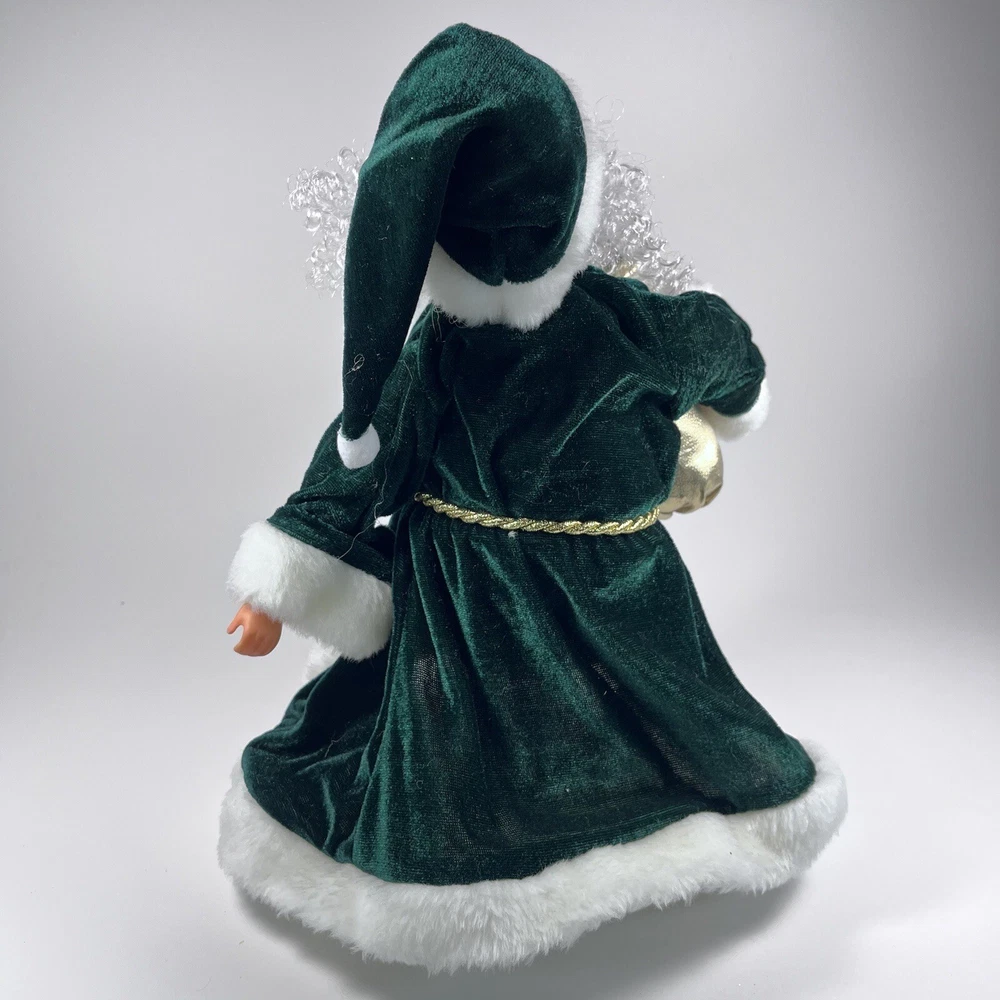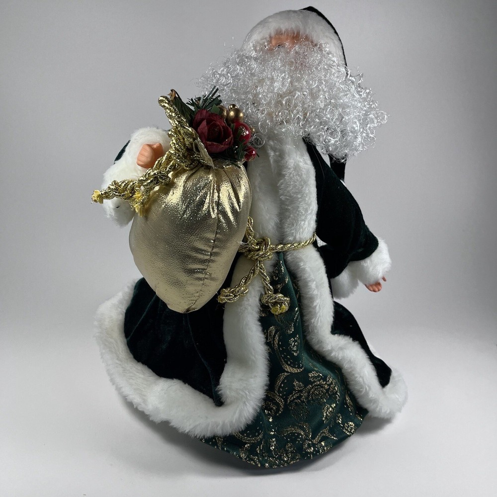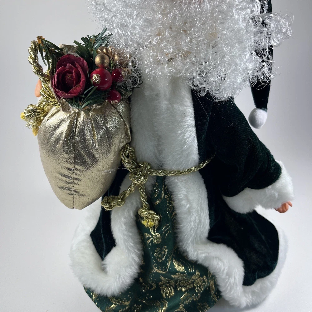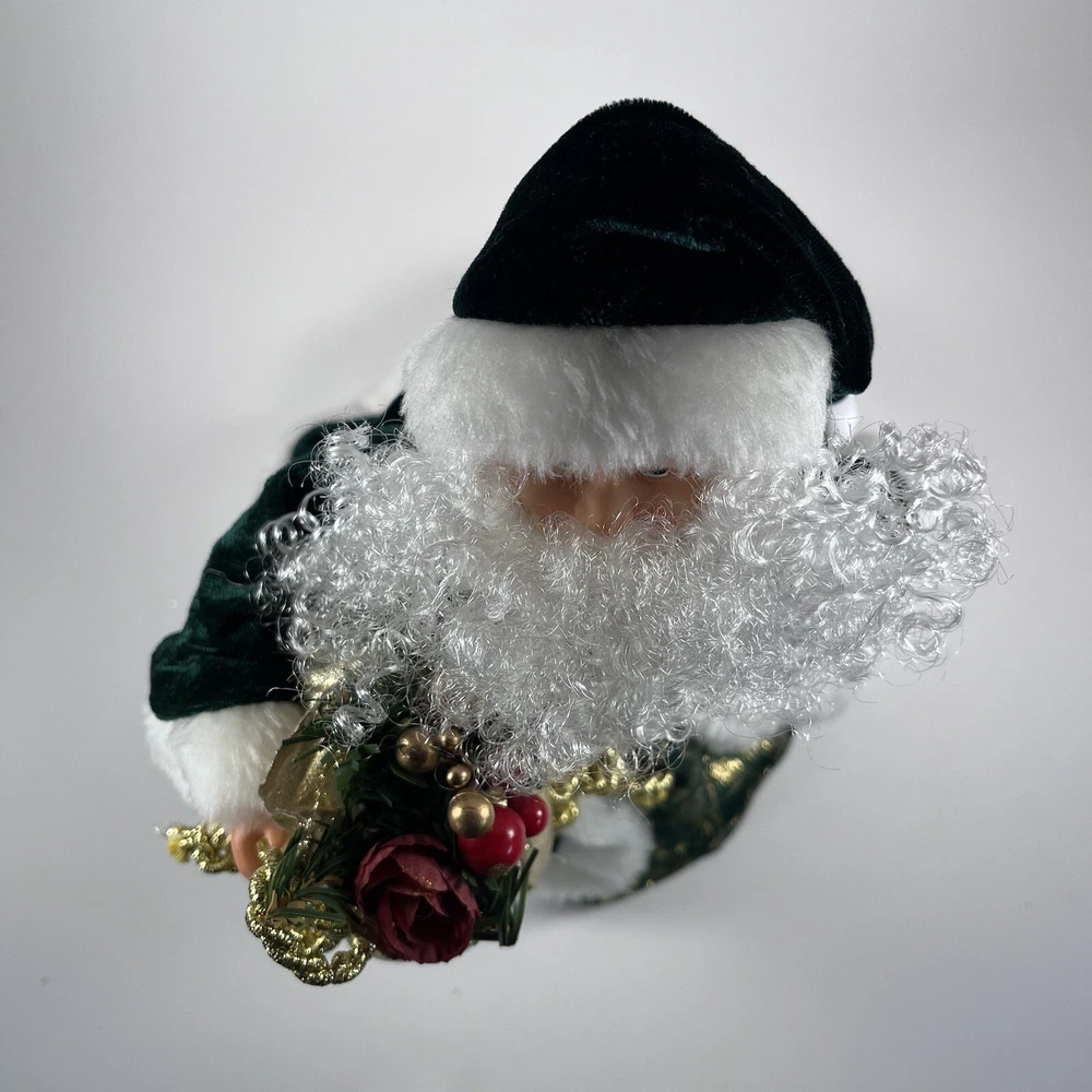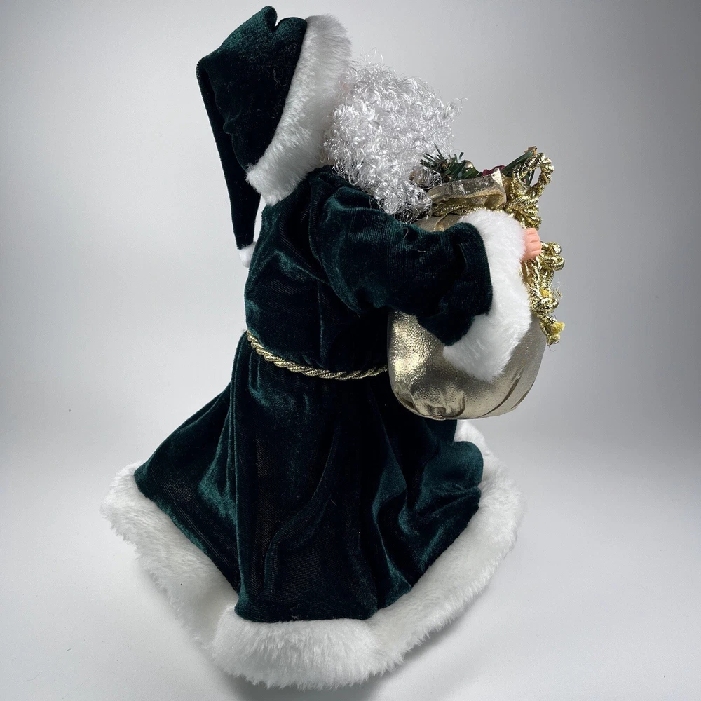 Add a touch of Victorian elegance to your Christmas décor with this beautiful green velvet Santa tree topper or shelf by Giftco. Crafted with care, this 13 inch high and 9 inch wide piece is perfect for adding to your holiday collection. The deep green color and luxurious velvet material make it a standout piece, while its charming Santa design adds a touch of whimsy to your space. Ideal for those who love traditional Christmas decorations, this item is sure to become a treasured piece in your collection.