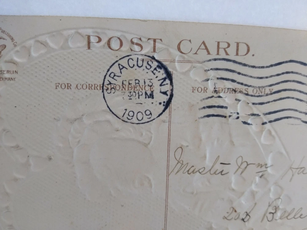 Victorian Love Greeting Valentine Postcard Ellen Clapsaddle 942 Syracuse NY 1909 Ellen Clapsaddle postcard signed on front. Series No.942 on back. Has tiny edge nibble, corner creases, and age wear. Posted with 1909 Syracuse, New York cancel and stamp. Stock #ny30. Additional vintage Halloween, Santa, Christmas, holiday postcards, are in our store. SHIPPING Bundle and save by using cart and making single payment. International buyers are responsible for any import fees/taxes. ABOUT US Seller of vintage ephemera, collectibles, retro gifts, advertising, artwork, vinyl records, pinball and arcade game flyers and parts, Mad magazines, antique Halloween & holiday postcards, Christmas items, super hero memorabilia, horror themed art, fun stuff. Combine to save by using the cart!