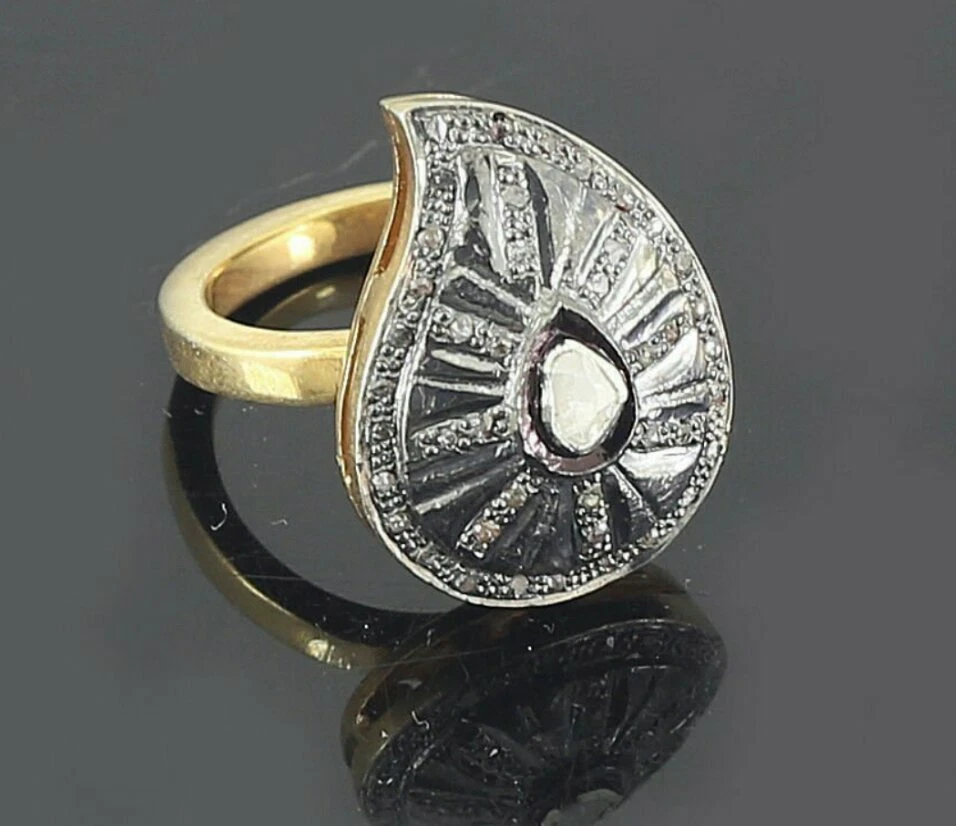 Personalize: No Total Carat Weight: 0.50 ctw - 0.74 ctw Metal: Sterling Silver Country/Region of Manufacture: India Customized: No Metal Purity: 925 Sizable: Yes Handmade: Yes Cut Grade: Good Material: Gemstone Wholesale: No Band Width: 3 mm Main Stone Treatment: Not Enhanced Main Stone Creation: Natural Type: Ring Main Stone Shape: Rose Cut Silver Weight: 4.500 Grams Approx Brand: Unbranded Color: White Main Stone Color: White Occasion: Anniversary, Birthday, Christening, Christmas, Confirmation/Communion, Engagement, Father's Day, Graduation, Mother's Day, Valentine's Day, Wedding Base Metal: Sterling Silver Vintage: Yes Secondary Stone: Diamond Features: Adjustable, Nickel-Free Ring Size: 7 Era: Undated Setting Style: Bezel Style: Cocktail Antique: Yes Diamond Weight: 0.55 Ctw Approx Main Stone: Diamond Polki Diamond Weight: 0.10 Ctw Approx Theme: Angels, Animals & Insects, Art, Awareness, Beach, Beauty, Biker, Birds, Bohemian, Buildings & Monuments, Celestial & Horoscope, Family & Friends, Flowers & Plants, Gambling/Casino, Healing, Holiday, Inspirational, Love, Memorial Country of Origin: India