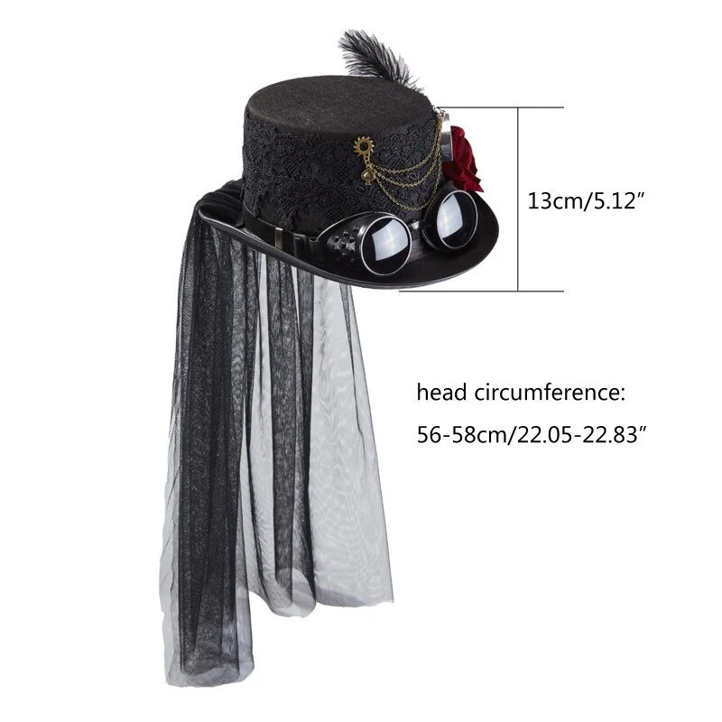 Features: Our steampunk hats are made of thick felt. Easy to wear, very comfortable, Lightweight and durable. Comfortable to wear, fits both women and men. Our awesome unisex steampunk hats are the perfect addition to your steampunk costume, masquerade mardi gras carnival for parade. suitable fit for most women gentleman and any occasion. You can send them as holiday or birthday gifts for your friend and family to give them a surprise. Specifications: Material: Felt Height: Approx. 13cm/ 5.11in Circumference: 56-58cm/ 22.04-22.83in Package Includes: 1pc Steampunk Hat with Flower and Decor note: Please allow 1-2cm errors due to manual measurement, make sure that you do not mind before you order. 2. Due to the difference between different monitors, the picture may not reflect the actual color of the item.