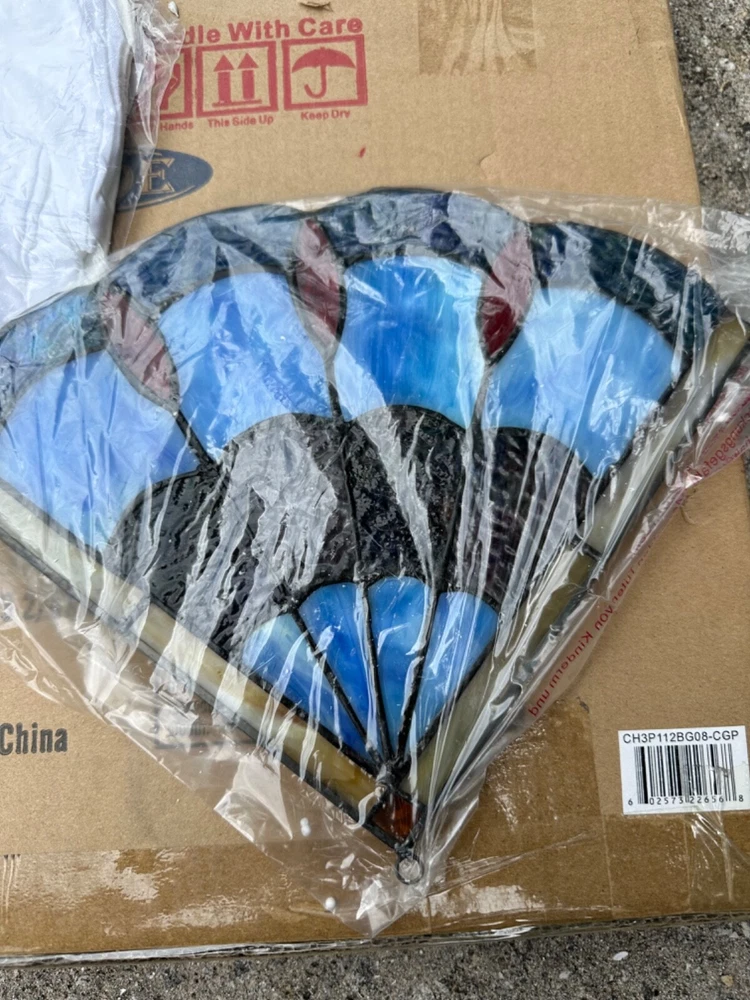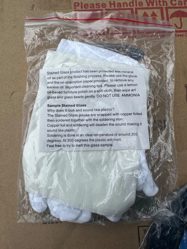 1 corner panel new in box. Victorian Tiffany-Glass Window Panel 8" Wide. Comes with all you see in the photo… Gloves and Care instructions.