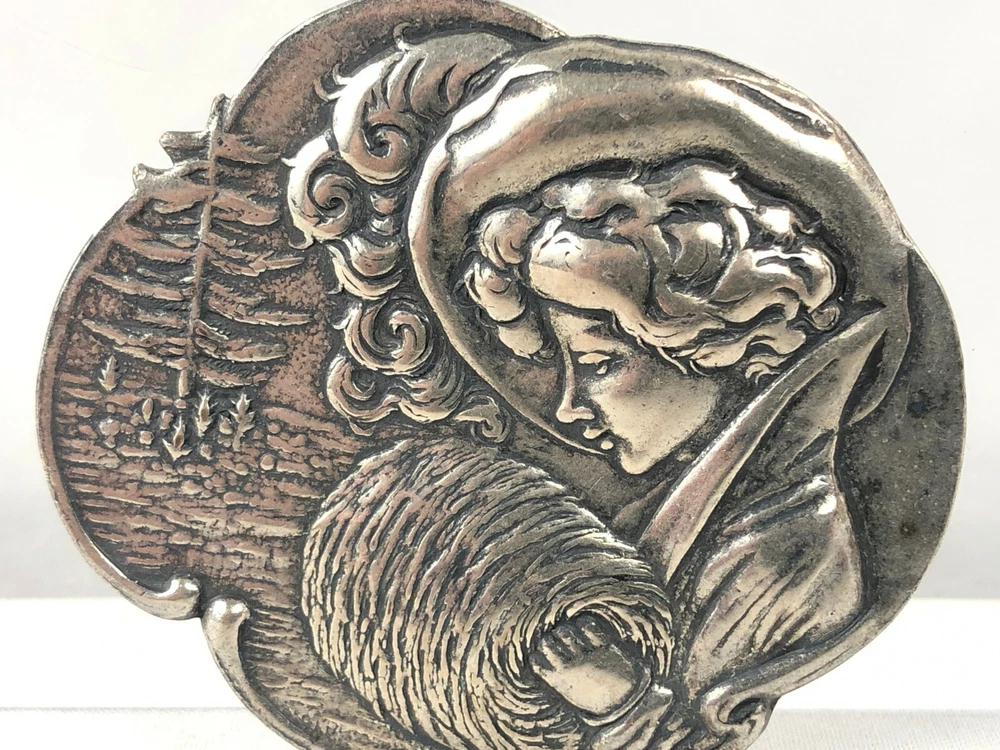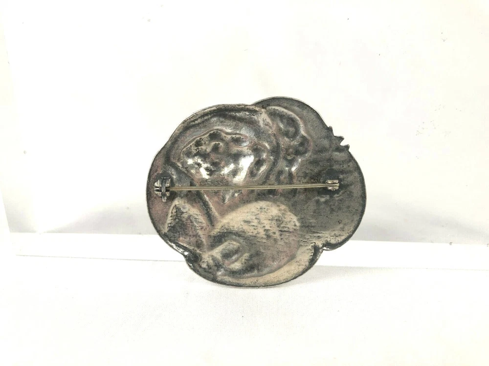 Victorian Woman w Hand Muff Hat Sterling Silver 925 Pin Brooch Estate Find 2 1/8 This is a nice heavy piece, very well designed. You will find scattered scratch and a nice patina, nothing serious, and the clasp is tight. Unmarked, tests as sterling 2 1/8" wide 18.0 gr