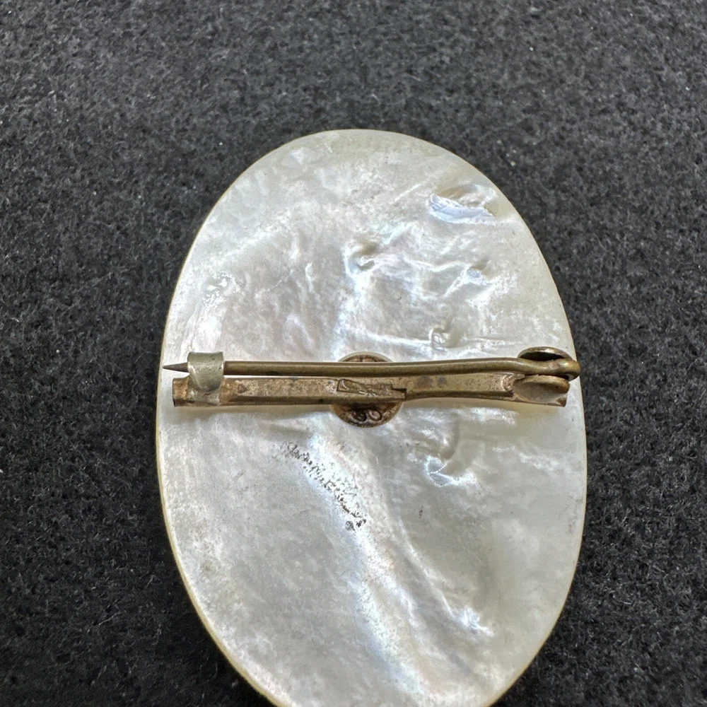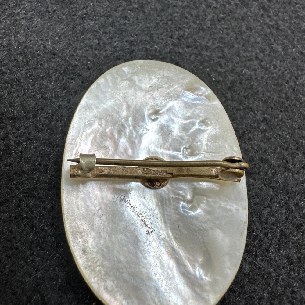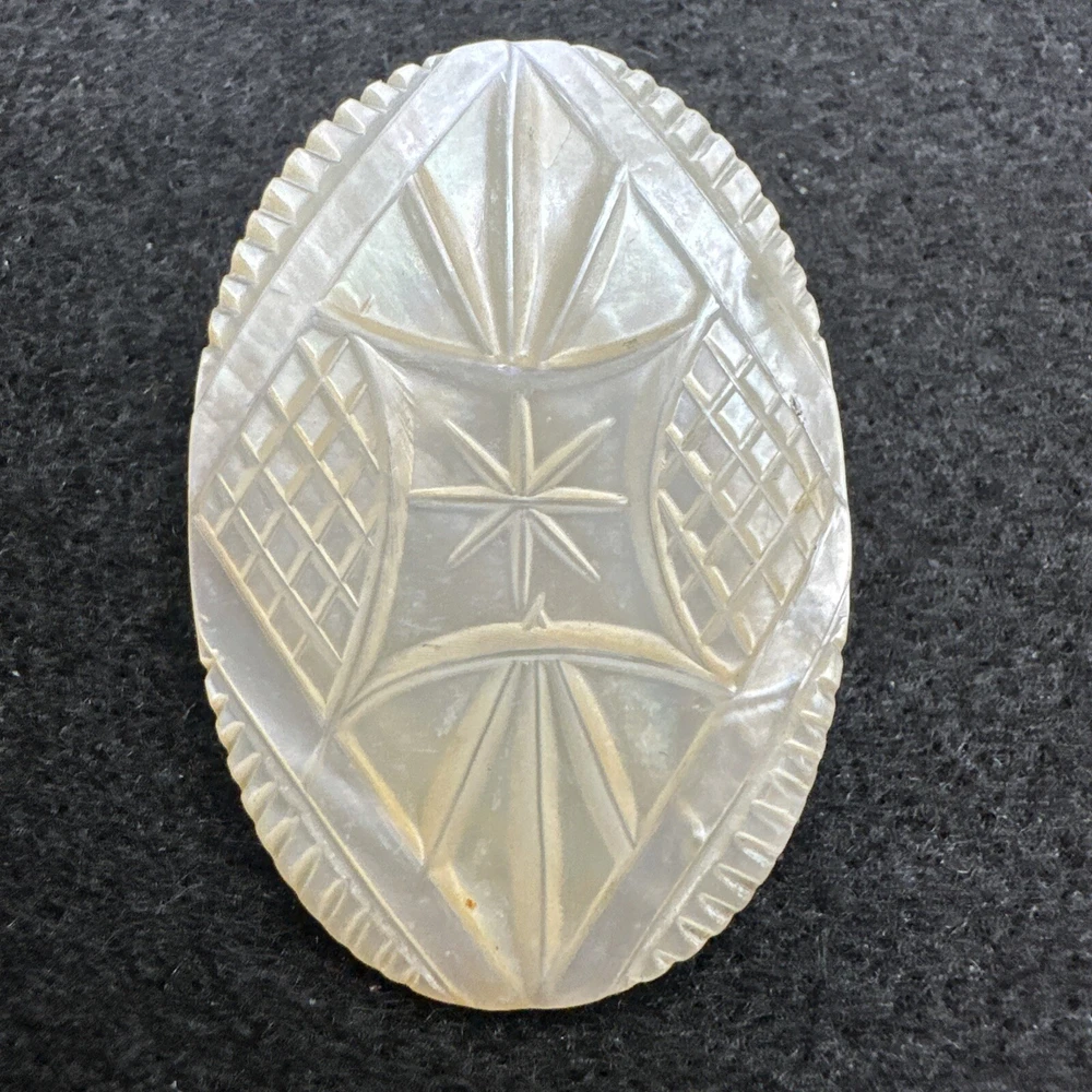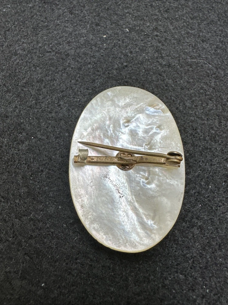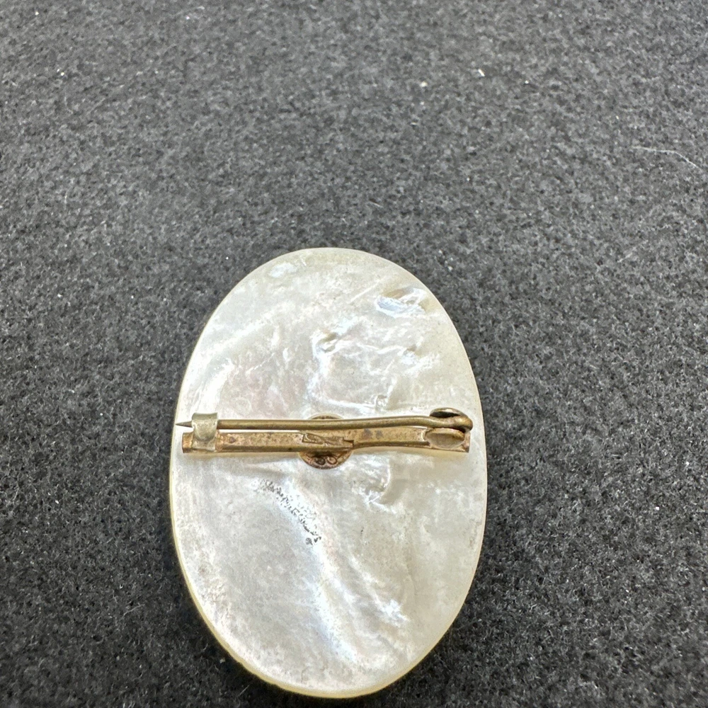 This beautiful oval brooch is a Victorian Mother-of-Pearl piece that exudes elegance and charm. The intricate design and craftsmanship of this antique jewelry item are evident in the delicate beige color and the unique shape. The brooch is made of Mother of Pearl material and is 2 inches in length, making it suitable for both men and women. The brooch is an original piece from the Edwardian era (1901-1910) and is a vintage item, making it a perfect addition to any antique collection. The brooch is a type of fashion accessory that can be worn on any occasion and adds a touch of sophistication to any outfit. The United States is the country of origin for this antique brooch, which is a must-have for any collector of vintage jewelry.