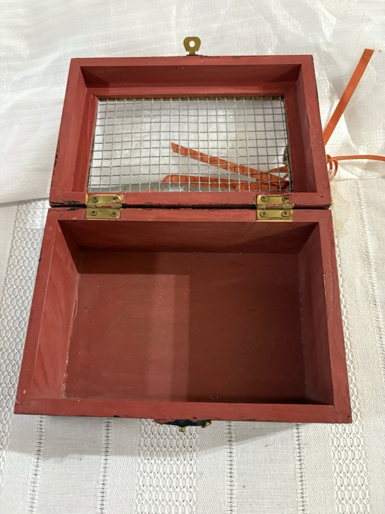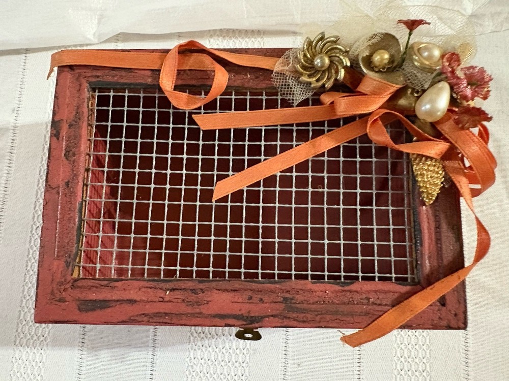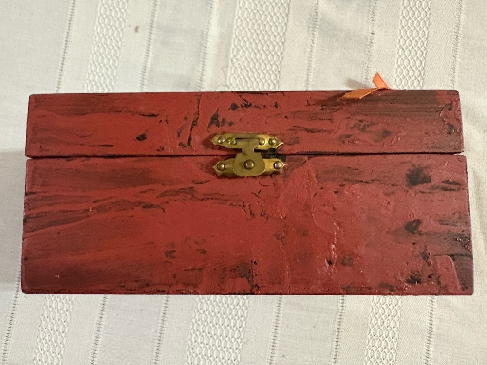 Brand: Unbranded Item Height: 3” Department: Adults, Teens Collection: Keepsake Boxes Item Length: 6.5” Item Width: 4.5” Material: Wood Color: Crackeled, rust, and black Type: Trinket Box Shape: Rectangle Theme: Romantic Style: Victorian