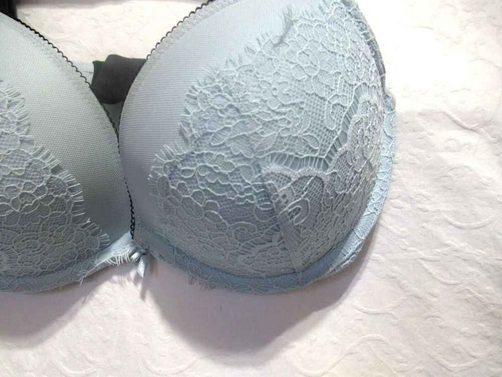Victoria's Secret 32DD Dream Angels Blue & Black Lace Extra Padded Push Up Bra It is in Excellent Preowned Condition - Please see all photos as they are an important part of the description 100% Polyester All products are Original Authentic Brand Names , I do not sell knock-offs or imitations ** I am in no way associated with this brand, therefore any assumed or implied guarantees, warranty and or return policy, associated with this brand are not covered. If you do have any issues or concerns please feel free to contact me. ** Attention VeRO members: I am not affiliated or endorsed by the companies mentioned in this listing. All trademarks and copyrights are acknowledged, they are only used for informative description of the items offered for sale. All items are authentic as evidenced in photos, legally acquired and owned, and hence covered under First Sale Doctrine. Warning. Everything sold into the state of California contains agents known to the state of California to cause cancer and birth defects, reproductive harm, or other, as yet unnamed, harm to its citizenry. I TRY MY BEST TO LIST EVERY ITEM AS ACCURATELY AS POSSIBLE, HOWEVER, I AM ONLY HUMAN AND SOMETIMES MISTAKES ARE MADE. I AM A VERY FAIR AND HONEST SELLER AND MY FEEDBACK AND EBAY REPUTATION ARE VERY IMPORTANT TO ME. I ASK THAT IF YOU HAVE A PROBLEM WITH YOUR PURCHASE PLEASE COME TO ME PRIOR TO LEAVING ANY TYPE OF FEEDBACK FIRST SO WE CAN WORK IT OUT