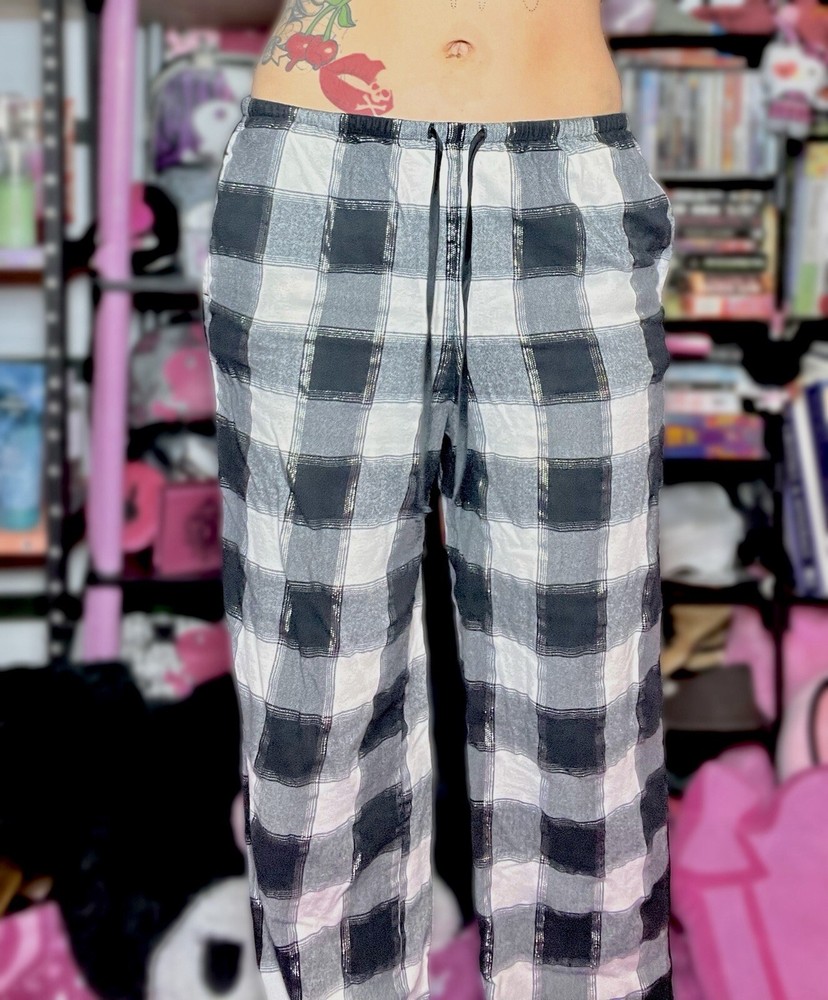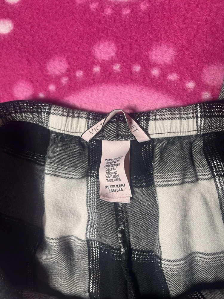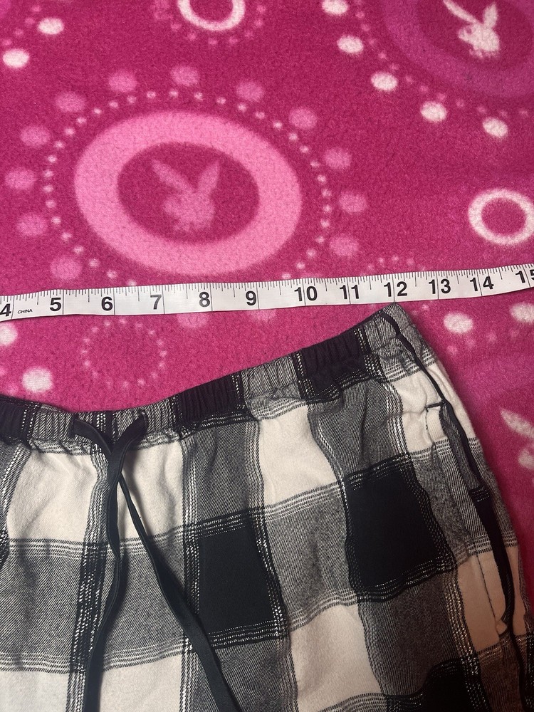 Victoria’s Secret black & white checkered shimmer pajama pants with lace trim bottoms. Size xs, shown on xs. Measurements in photos. Good preowned condition