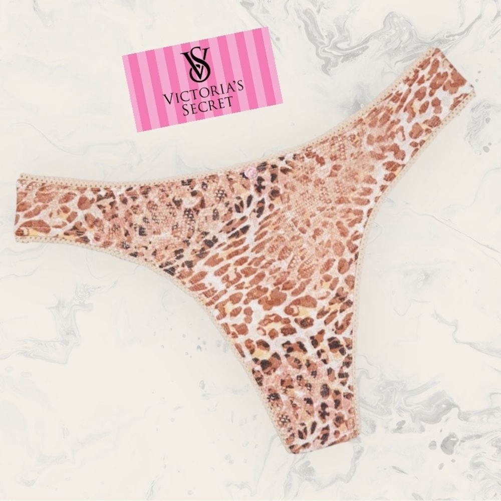 VICTORIA’S 💎 SECRET Cotton Thong Panty Size: M Color: Toasted Almond Leopard Made in Sri Lanka Brand New in Factory Bag with Tags*** This barely-there panty in pure, soft spun cotton. Finished with a rosette and stretch lace trim. Mid rise Picot elastic waistband Stretch lace trim Rosette accent at center front No back coverage Machine wash Composition Body / Gusset:100% Cotton **Bundle and Save** Please Review all Photos!! **No Pet. Smoke-Free Home** Thank you for Visiting my Store.!!