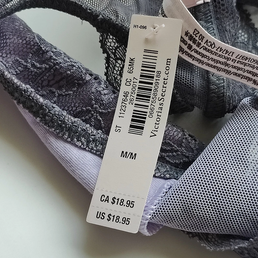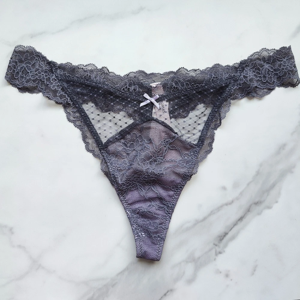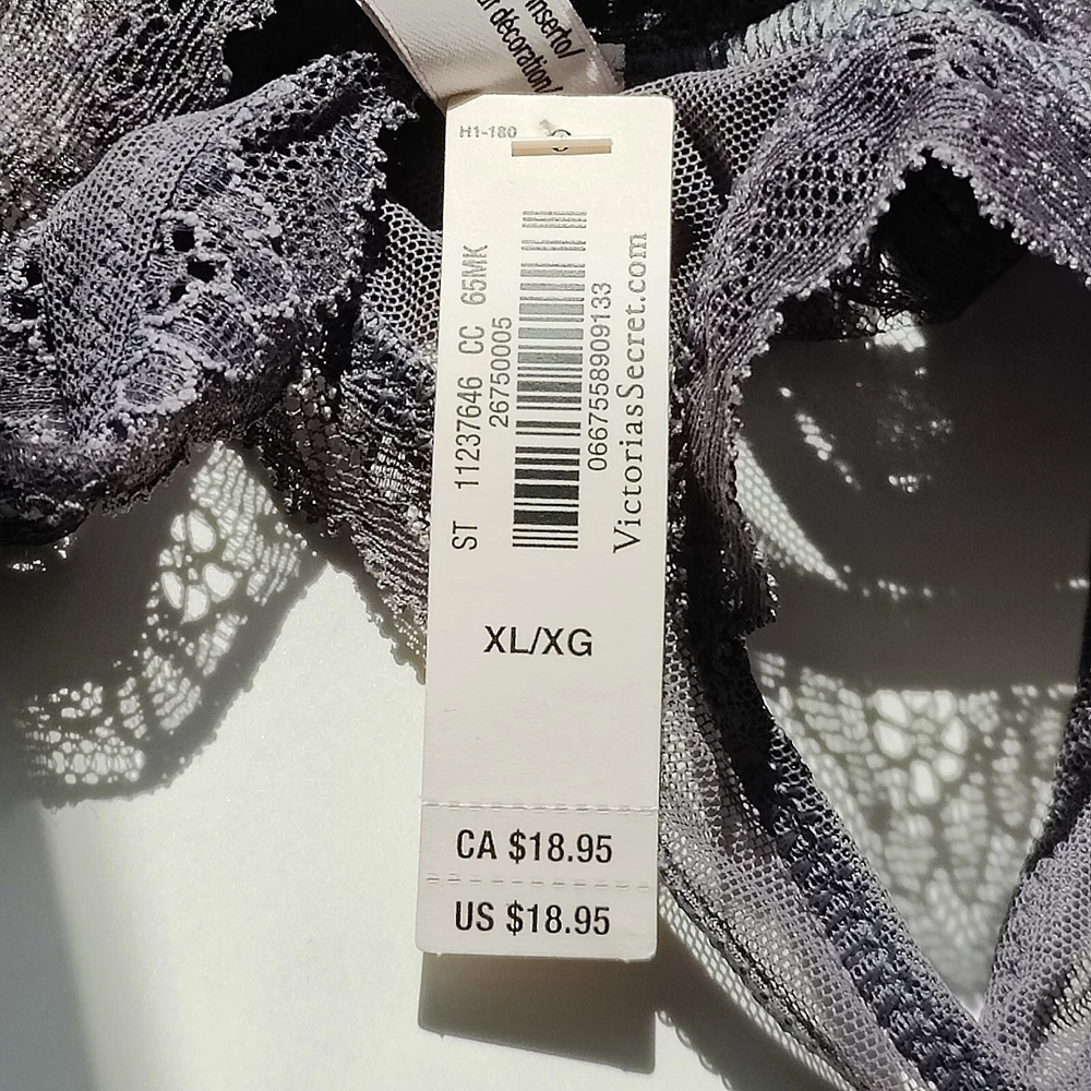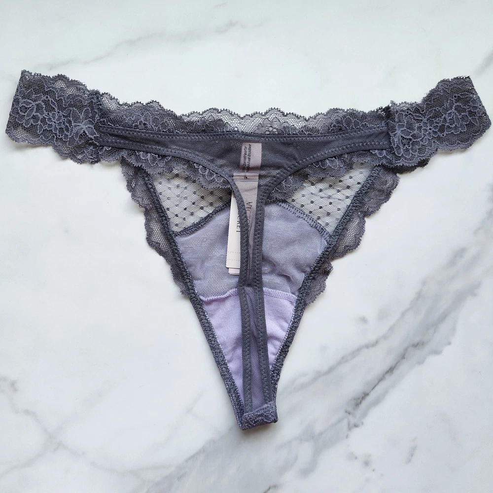 All photos are taken by Goob's Closet & Boutique and may not be reused without permission. Goob's Closet & Boutique lists on multiple platforms. If you choose to wait or "Watch", the listing may sell out on another platform first, and will then no longer be available for purchase on eBay without notice to you. This thong panty is designed with minimal back coverage and a low-rise fit that’s flattering. The body is made of soft and stretchy floral lace that feels comfortable against your skin. The front features pretty dotted tulle lace mesh panels that add a delicate touch, while the back is made from sheer stretch mesh for added elegance. There’s also a charming little bow detail at the front for an extra bit of style. This panty is made partially from recycled materials, making it a more sustainable choice. Plus, the gusset is 100% cotton, ensuring breathability and comfort for all-day wear. Details Thong Style Minimal Back Coverage Low Rise Soft Stretch Floral Lace Body Dotted Tulle Lace Mesh Panels at Front Stretch Sheer Mesh Panel at Back Center Bow Detail at Front Elastic at Waist and Leg Openings Made Partially from Recycled Materials 100% Cotton Gusset Style No. 11237646 Material Body: 58% Recycled Polyamide, 27% Polyamide, 15% Elastane Upper Body: 100% Polyester Mesh: 88% Polyamide, 12% Elastane Side Panel: 56% Recycled Polyamide, 33% Polyamide, 11% Elastane Trim: 58% Recycled Polyamide, 28% Polyamide, 14% Elastane Gusset: 100% Cotton Care Machine Wash Measurements Victoria's Secret Size Small (S) will fit US Size 4-6, Waist 26-27 inches, Hips 35.5-37.5 inches best. Victoria's Secret Size Medium (M) will fit US Size 8-10, Waist 28-29 inches, Hips 38.5-39.5 inches best. Victoria's Secret Size Large (L) will fit US Size 12-14, Waist 30.5-32 inches, Hips 41-42.5 inches best. Victoria's Secret Size Extra Large (XL) will fit US Size 16-18, Waist 34-36 inches, Hips 44.5-46.5 inches best.