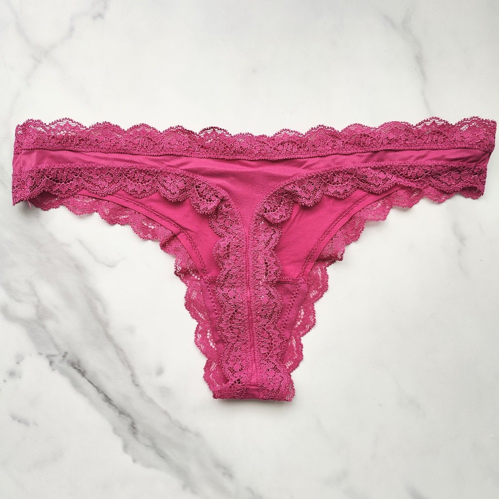 Personalize: No Fabric Type: Microfiber Style: Thong/String Vintage: No Rise: Low Size Type: Regular Theme: 90s, Angel, Antique, Bohemian, City, Classic, Colorful, Fairytale & Fantasy, Festival, Flower, Fun, Happy, Modern, Novelty, Preppy, Retro, Rose, Special Occasion MPN: Style No. 11250670 Model: Dream Angels Lace-Trim Thong Color: Pink Garment Care: Machine Washable Department: Women Brand: Victoria's Secret Number in Pack: 1 Pack Material: 100% Cotton, Cotton, Polyamide, Polyamide Blend, Polyamide Fiber, Elastane Type: Panties Pattern: Solid Features: Breathable, Lightweight, Sheer, Stretch Character: Dream