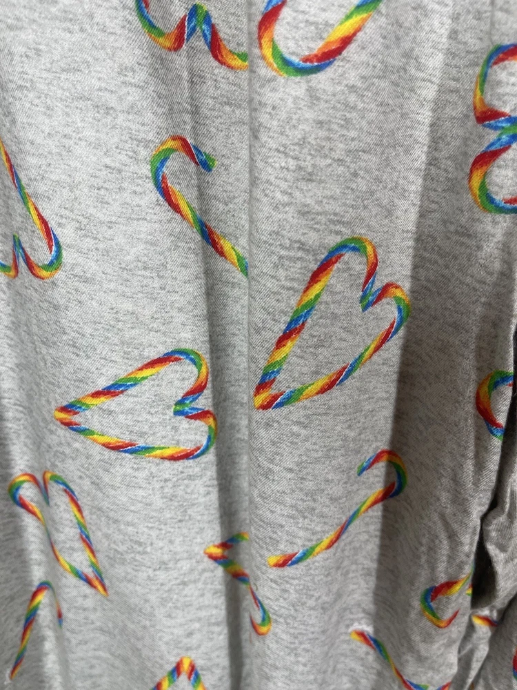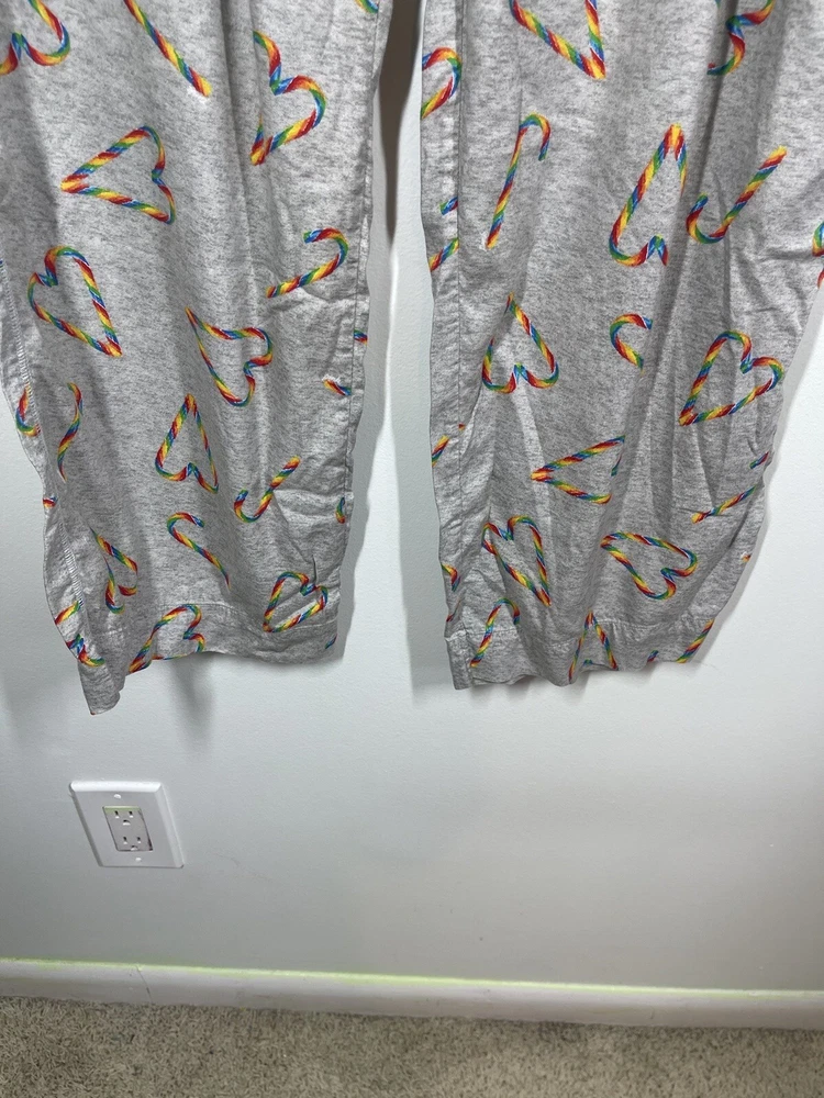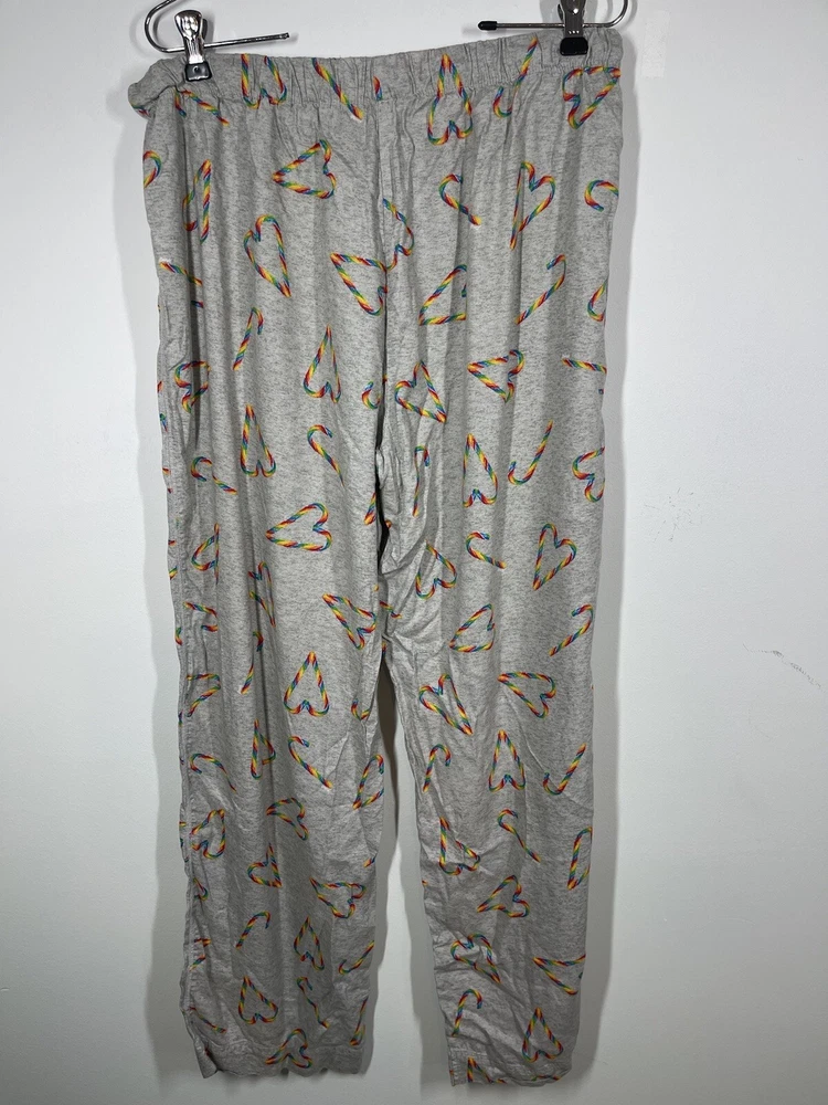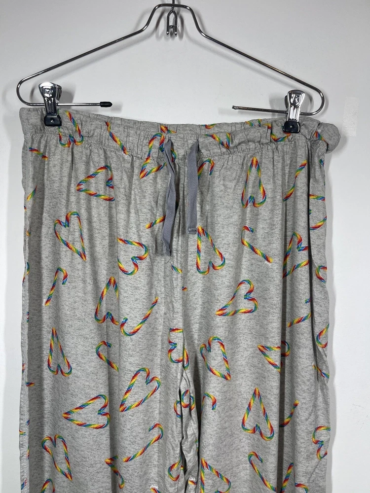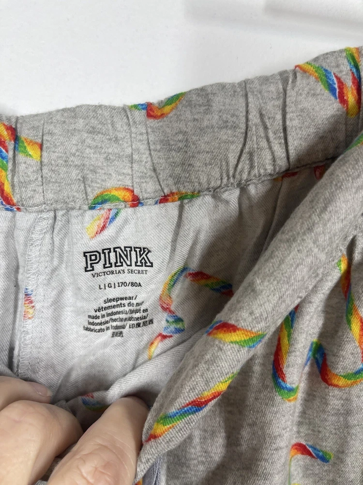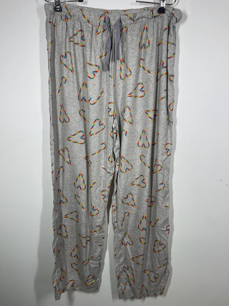 Victoria’s Secret PINK Women’s pajama pants Gray Rainbow Candy Cane Hearts L