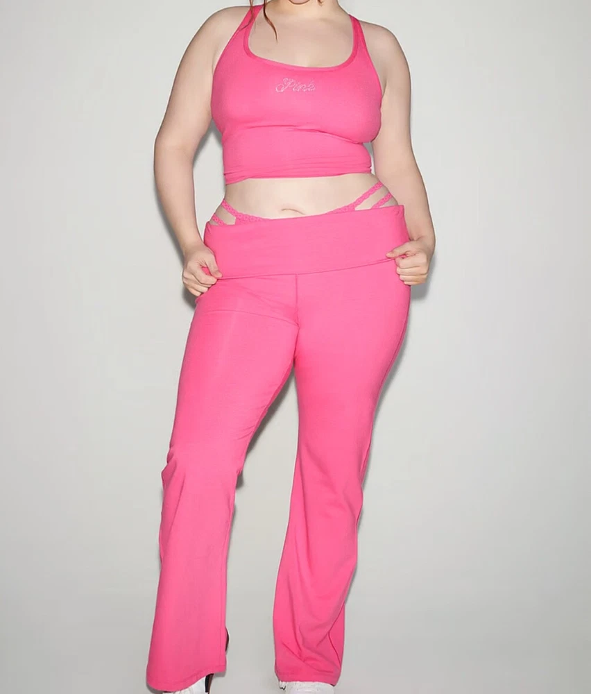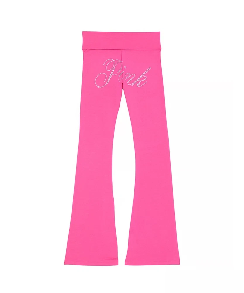 PINK (Sold Out) ALL DAY COTTON BLING FOLDOVER FLARE LEGGINGS PRODUCT DESCRIPTION The Takeaway: Choose your rise Smart design means you can wear the waistband how you want—either high, mid, or low for that Y2k look. A flared leg adds a cool kick. Adjustable foldover waistband lets you pick the rise: low, mid, or high Breathable 4-way stretch Imported