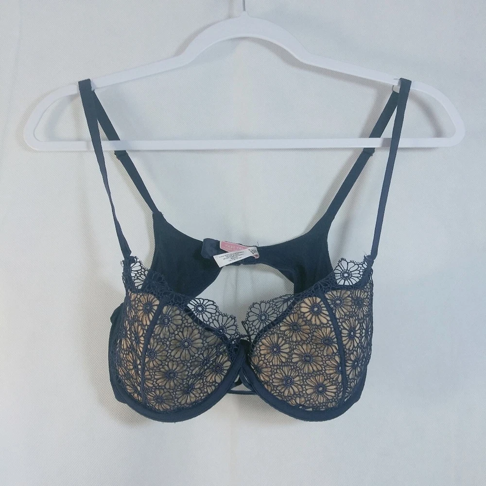 Victoria's Secret Purple Floral Lace Push Up Without Padding Size 34 D purple lace flower lace detailing push up gently worn please see photos for more details
