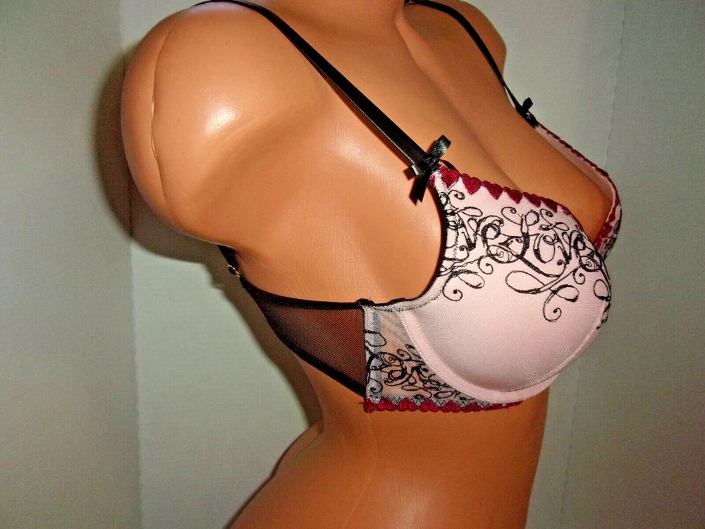 Victoria's Secret Push up Bra Pink Lace/Embroidery/Faux Leather Straps 32D