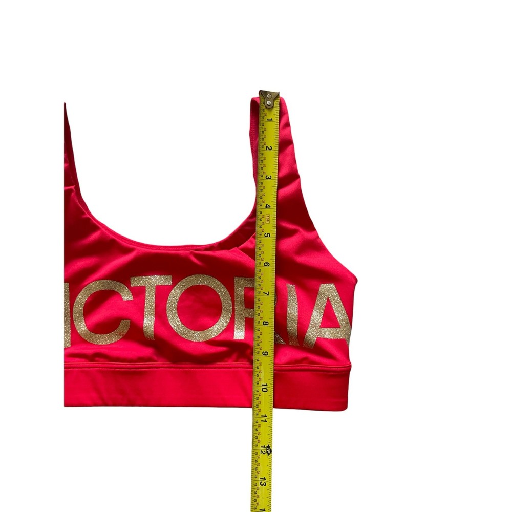 Victoria’s Secret Sports Bra with Gold Glitter Lettering Womens Size XS/S Size tag cut out Pay close attention to measurements NWOT no flaws Keywords: Victoria Secret, VS, Sports Bra, Red and Gold, Loungewear, Casual, Streetwear