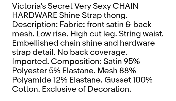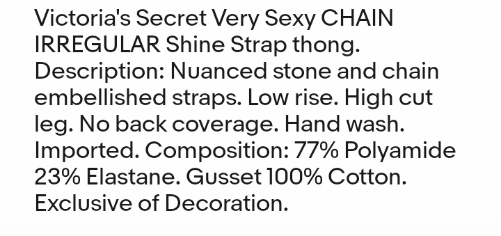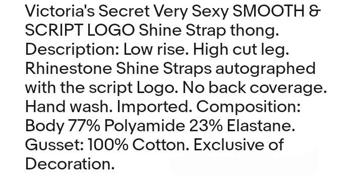SALE LIMITED TIME!!! GET NOW ENDING SOON Victoria's Secret SHINE STRAP thong pantie. Condition is "New with the tags" 100% Authentic. Here to dazzle: a streamlined thong. Low rise. Rhinestone straps. No back coverage. Imported. NOTE: for more details about the item, you can go to the Selection Menu, then you can check the photos with the product description for each one. FOLLOW ME AND SHARE FOR MORE DEALS CHECK MY OTHERS ITEMS ACCEPT OFFERS!!! Support my small business THANK YOU!!!