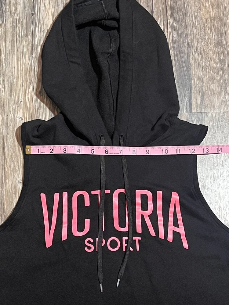 This Victoria's Secret Sport Fleece Boxer Hooded Slub Muscle Tank in black is the perfect addition to your activewear collection. Made with a cotton blend fabric, it is both easy care and lightweight, making it ideal for all seasons. The tank features a drawstring neckline and a relaxed fit, providing comfort during any performance or activity, including cross training, Pilates, basketball, hiking, running and jogging, gym and training, walking, weightlifting, school, dance, CrossFit, skateboarding, and yoga. The tank is machine washable and is part of the Victoria Sport product line. It is perfect for those who appreciate a grunge, dance, hip hop, or sports-themed style. It is in good pre-owned condition. Please zoom in on photos for style, measurements, and condition details.