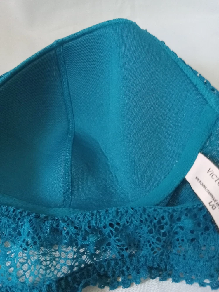 Experience the perfect blend of comfort and elegance with this Victoria's Secret T-back bra in a stunning teal hue. Designed for the modern woman, it offers a large padded cup to provide ample support and a flattering silhouette. The lacy detailing adds a touch of romance to your lingerie drawer, making it a delightful choice for any occasion. Crafted with the ease of a pull-on style and finished with a charming teal color, this bra is an essential addition to your wardrobe. The sleek design ensures a seamless look under any outfit, while the high-quality construction promises lasting shape and color vibrancy. Indulge in the blend of style and function that only Victoria's Secret can offer.