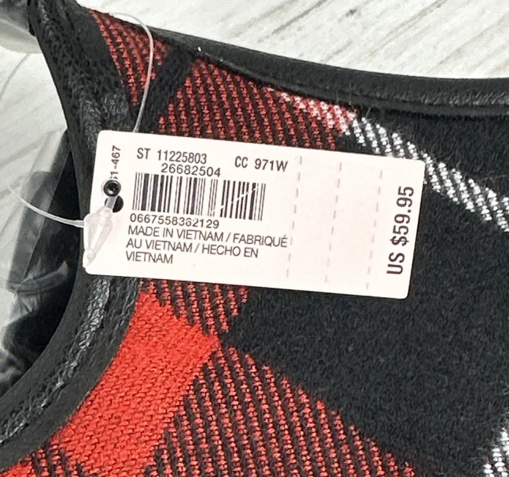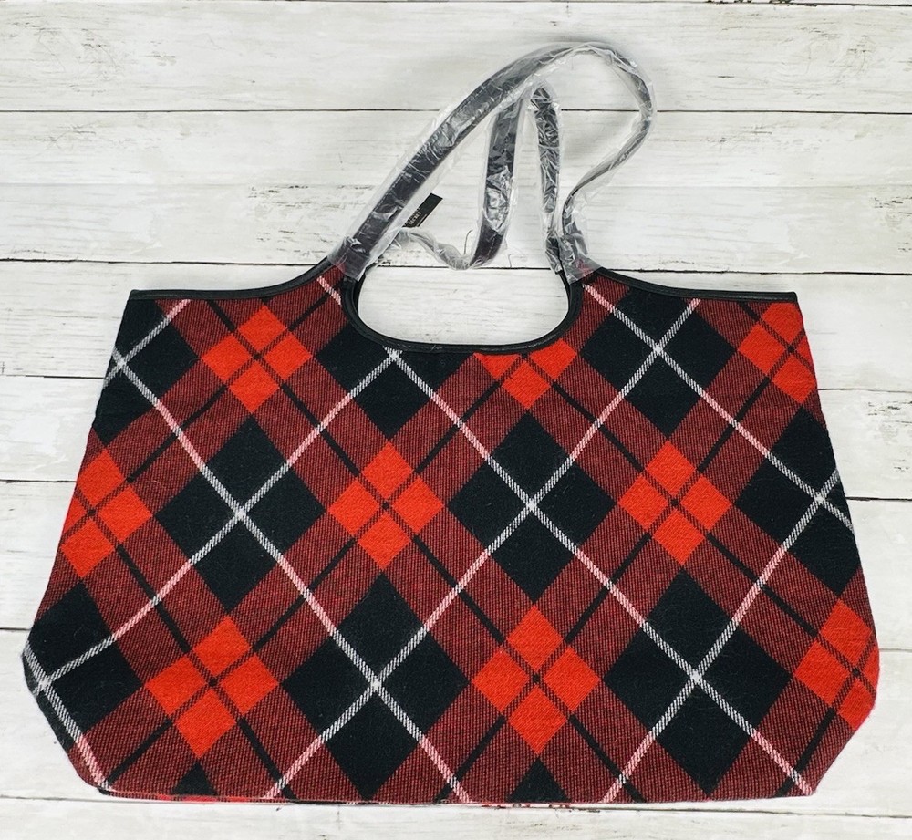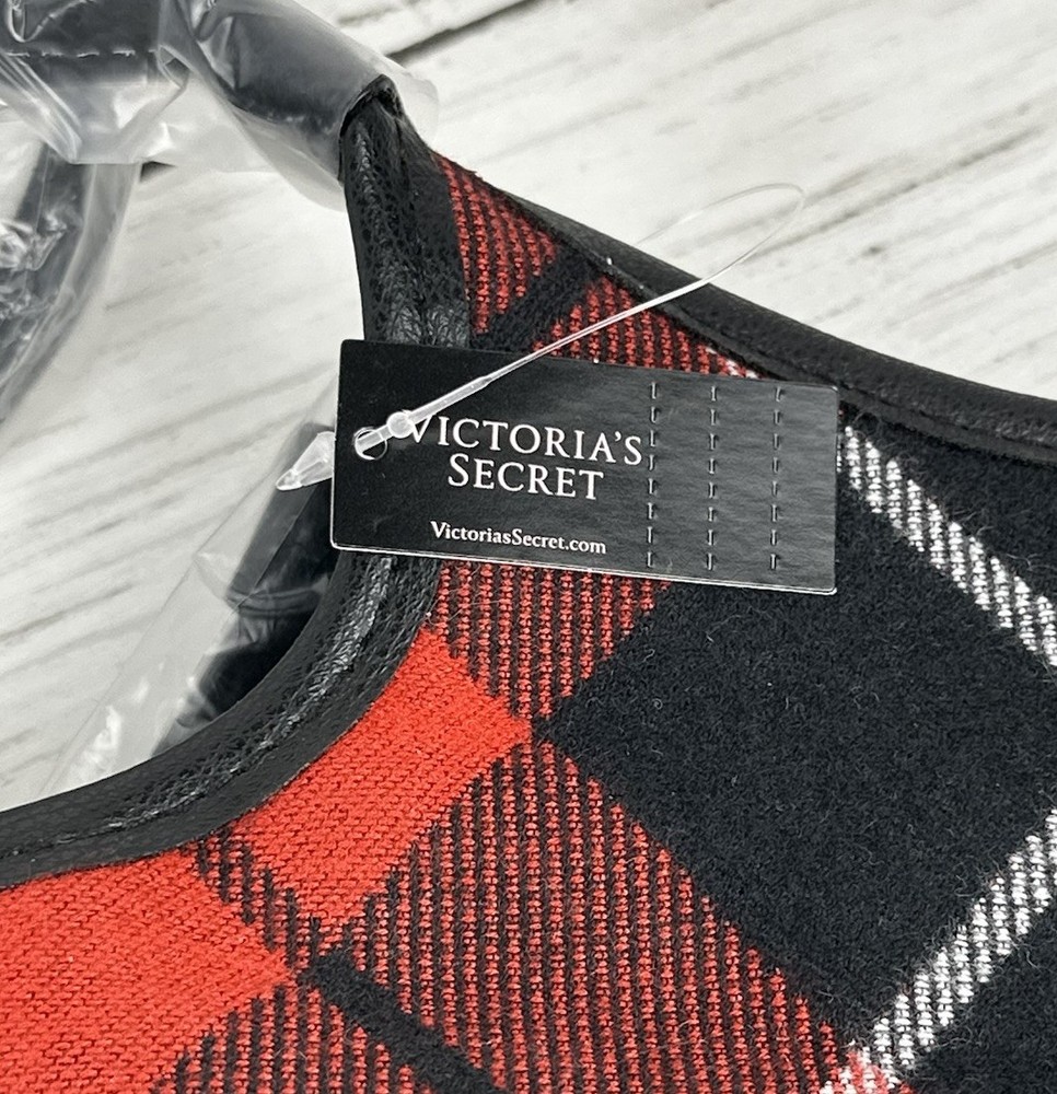 Exterior Color: Red Country of Origin: Vietnam Lining Material: Polyester Pattern: Plaid Vintage: No gtin13: 0667558362129 Department: Women UPC: 0667558362129 Lining Color: Black Brand: Victoria's Secret Style: Tote MPN: 11225803 Features: Lined, Pockets Closure: Snap Handle/Strap Color: Black Hardware Color: Silver Exterior Material: Polyester Handle/Strap Material: Faux Leather Occasion: Casual, Travel