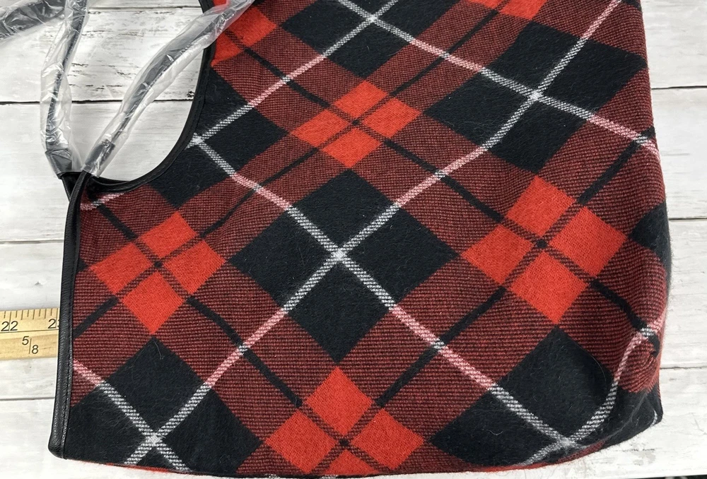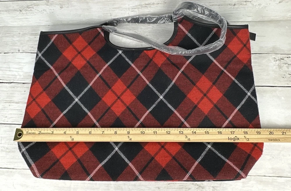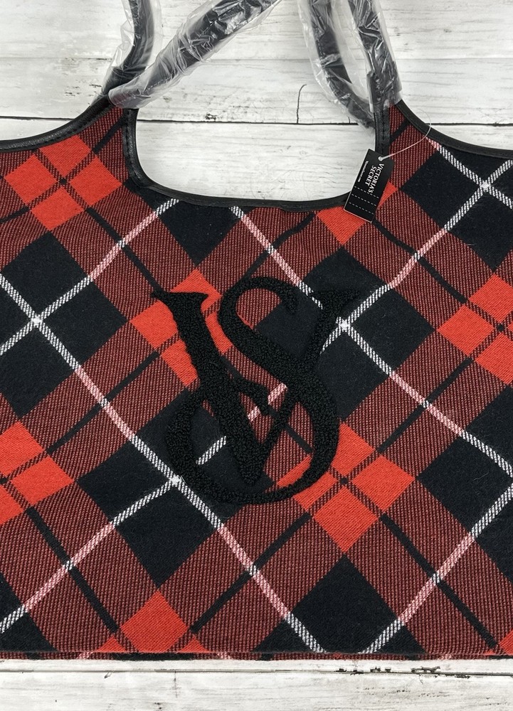 Victoria's Secret Tote Bag Red Black Tartan Plaid VS Logo Weekender NEW