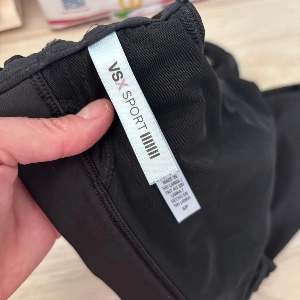 Style: Sports Bra Brand: Victoria's Secret Size Type: Regular Support Level: Low Seller Notes: “EXCELLENT Pre-owned condition: minimal to no signs of wear, no stains or holes” Fabric Type: Knit Type: Bra Size: S Color: Black Band Size: S Department: Women Material: Polyester Blend, Elastane Blend Features: Lightweight, Stretch, Lightly Lined, Comfort Straps, Keyhole, Compression Fit, Removable Pads Performance/Activity: Gym & Training, Yoga, Pilates, Running & Jogging, Athleisure