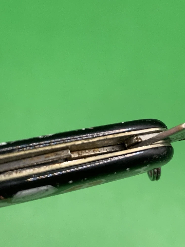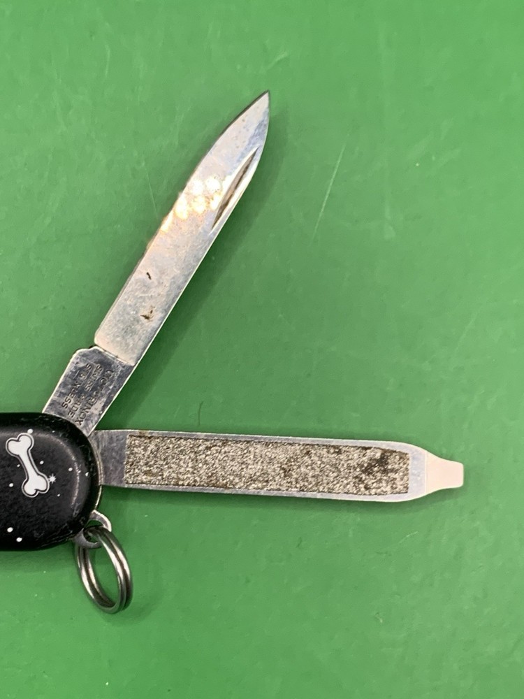 Used Victorinox knife. Scales have minimal to no wear on them and the blades may need to be sharpened. The nail file opening mechanism is broken and won’t lock into place and the nail file can’t close all the way due to the damage. No toothpick. See pictures for overall cosmetic condition. By purchasing you affirm that you are of legal age and aware of all applicable laws.