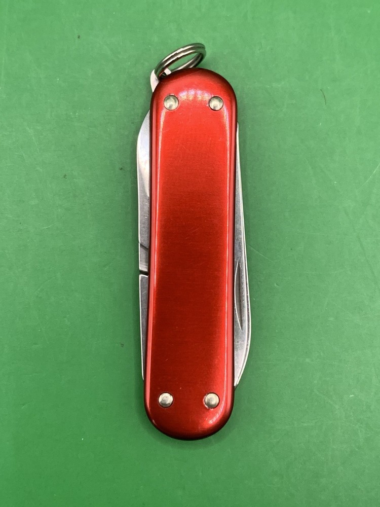Used Victorinox knife. Scales have minimal to no wear on them and the blades may need to be sharpened. See pictures for overall cosmetic condition. By purchasing you affirm that you are of legal age and aware of all applicable laws.