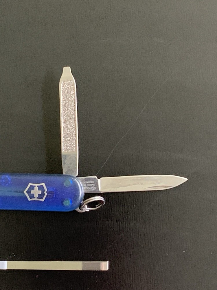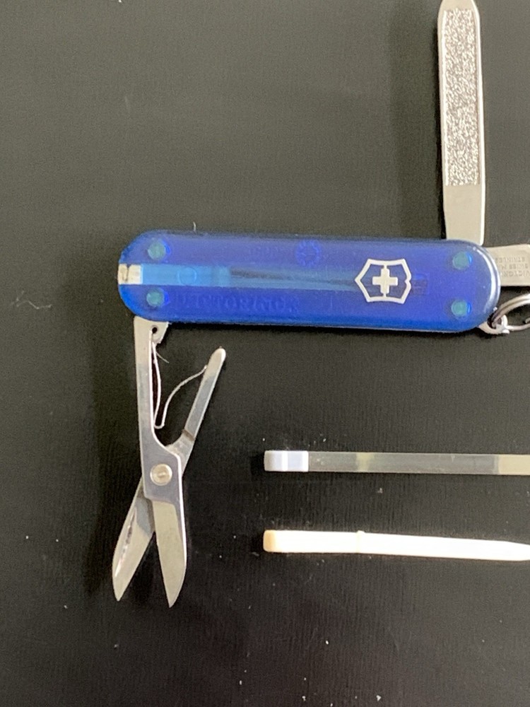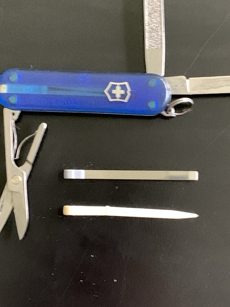 Opening Mechanism: Manual Brand: Victorinox Original/Reproduction: Original Blade Material: Stainless Steel Blade Range: Under 2.75in. Tools: Nail File, Scissors, Screw Driver, Toothpick, Tweezers, Cutting Blade Type: Pocketknife Modified Item: No Lock Type: Slipjoint Country/Region of Manufacture: Switzerland Model: Victorinox Swiss Army Year: NA Color: Blue Product Line: SD Blade Edge: Plain Handle Material: Stainless Steel Blade Type: Pen Number of Blades: 1 Dexterity: Ambidextrous
