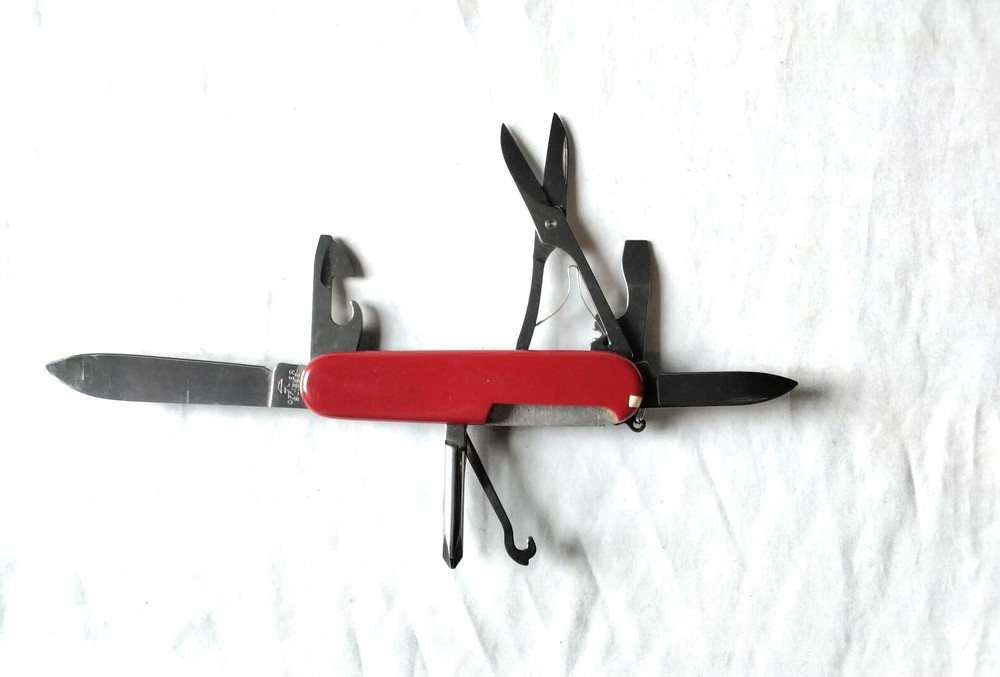 SWISS ARMY VICTORINOX OFFICER SUISSE 7 BLADE TOOL POCKET KNIFE ORIGINAL SURVIVAL Very Good Condition NWR Embossed on Handle Shipping is $5.00 Anywhere, U.S.