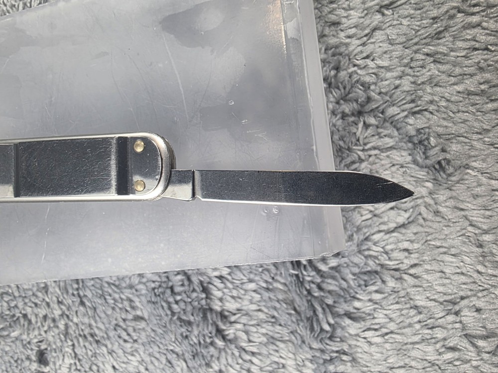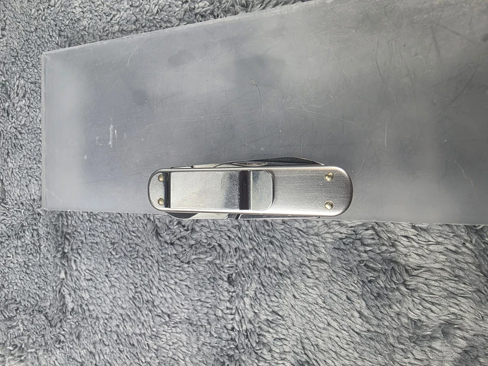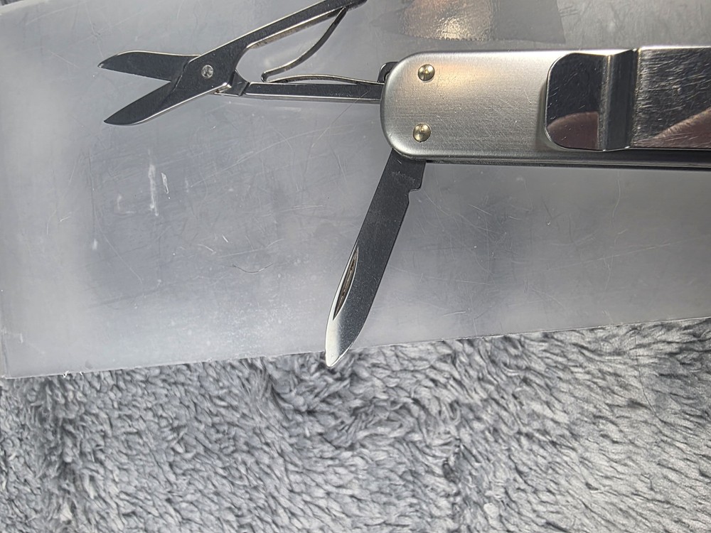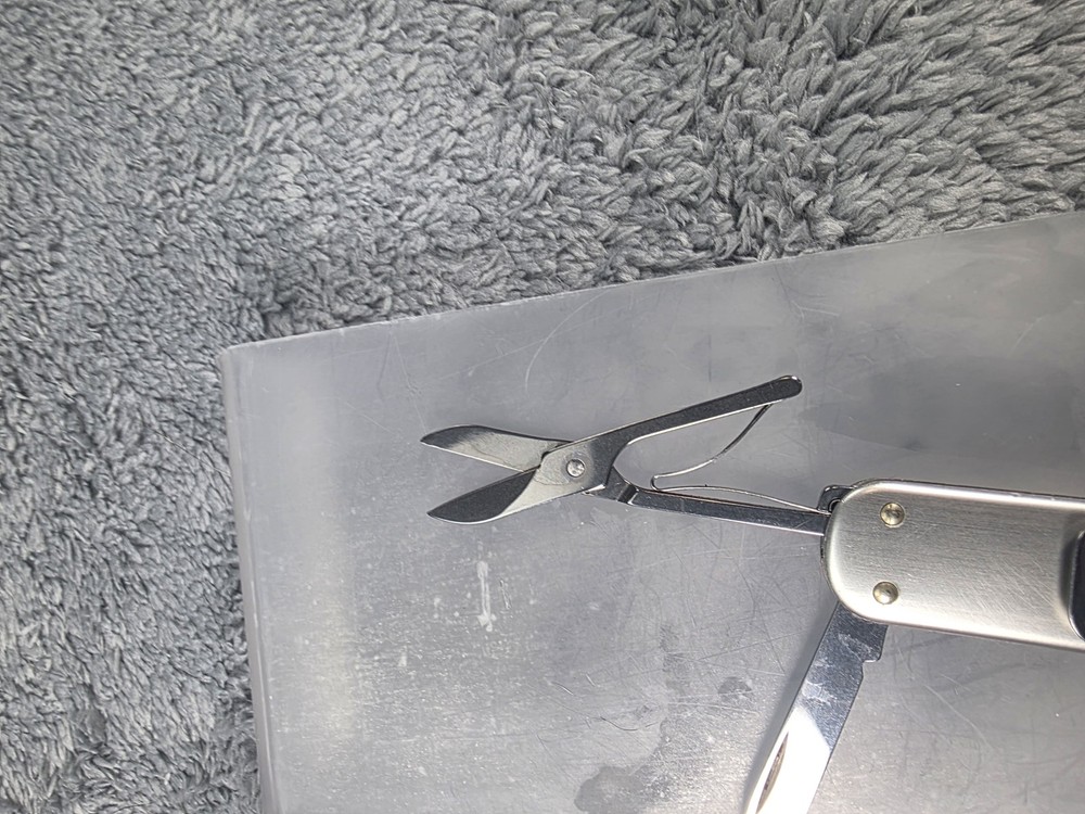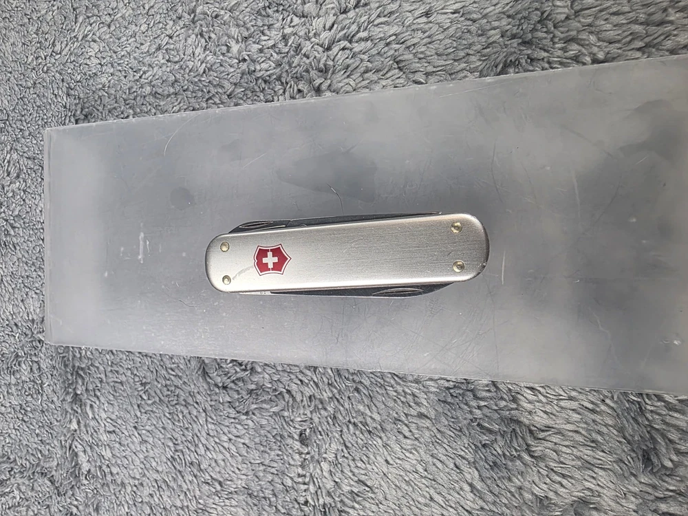 Victorinox Swiss Army Alox Pocket Knife with Scissors, Nail File, and Pocket Clip in Silver finish Condition: Good used condition – light wear on handle and minor marks on blade, as seen in photos Features genuine Victorinox Swiss Army construction and signature red shield logo on handle Includes three main tools: plain edge knife blade, nail file with tip, and precision spring-loaded scissors Durable ribbed aluminum Alox scales provide classic style and extra grip Pocket clip attached for convenient everyday carry (EDC) Compact and lightweight design perfect for keychain or pocket Swiss made quality, known for reliable multi-tool performance Item is in gently used pre-owned condition. Item may contain normal signs of wear, blemishes, discoloration, creases and/or other signs of distress. Photos depict the exact item you will receive. Please refer to photos for full details prior to purchasing. Items are cleaned in accordance with eBay's standards and policies. Fast Free USPS Shipping - 30 Day Returns - Hats Ship in a Box Great for daily tasks, traveling, or as a collectible