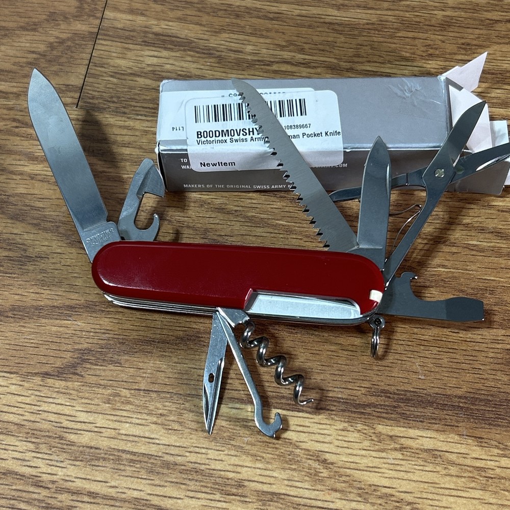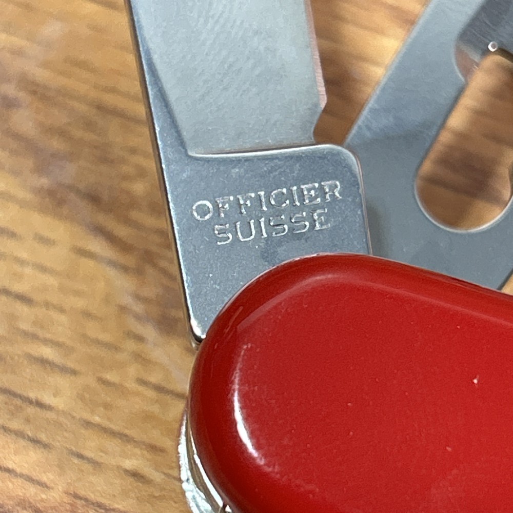 Crafted with exceptional craftsmanship, the Victorinox Swiss Army Officier Suisse Pocket Knife is a versatile multi-tool that meets the needs of both everyday carry and outdoor enthusiasts. It features a robust stainless steel blade with a combination edge, ensuring durability and precision for a variety of tasks. The bright red plastic handle provides a secure grip, while the compact design fits comfortably in any pocket or tool kit. This multi-tool includes over a dozen tools such as a punch, marlinspike, toothpick, corkscrew, magnifying glass, scissors, screwdriver, tweezers, saw, fish scaler, bottle opener, and nail file, making it an all-in-one solution for hunting, camping, or emergencies. The Victorinox Swiss Army SwissChamp is a true original, renowned for its quality and the exceptional functionality that has earned its place in the Military product line. The photos are the best description. You will receive what I only show in the photos If you have questions let me know before buying the item Thanks and regard