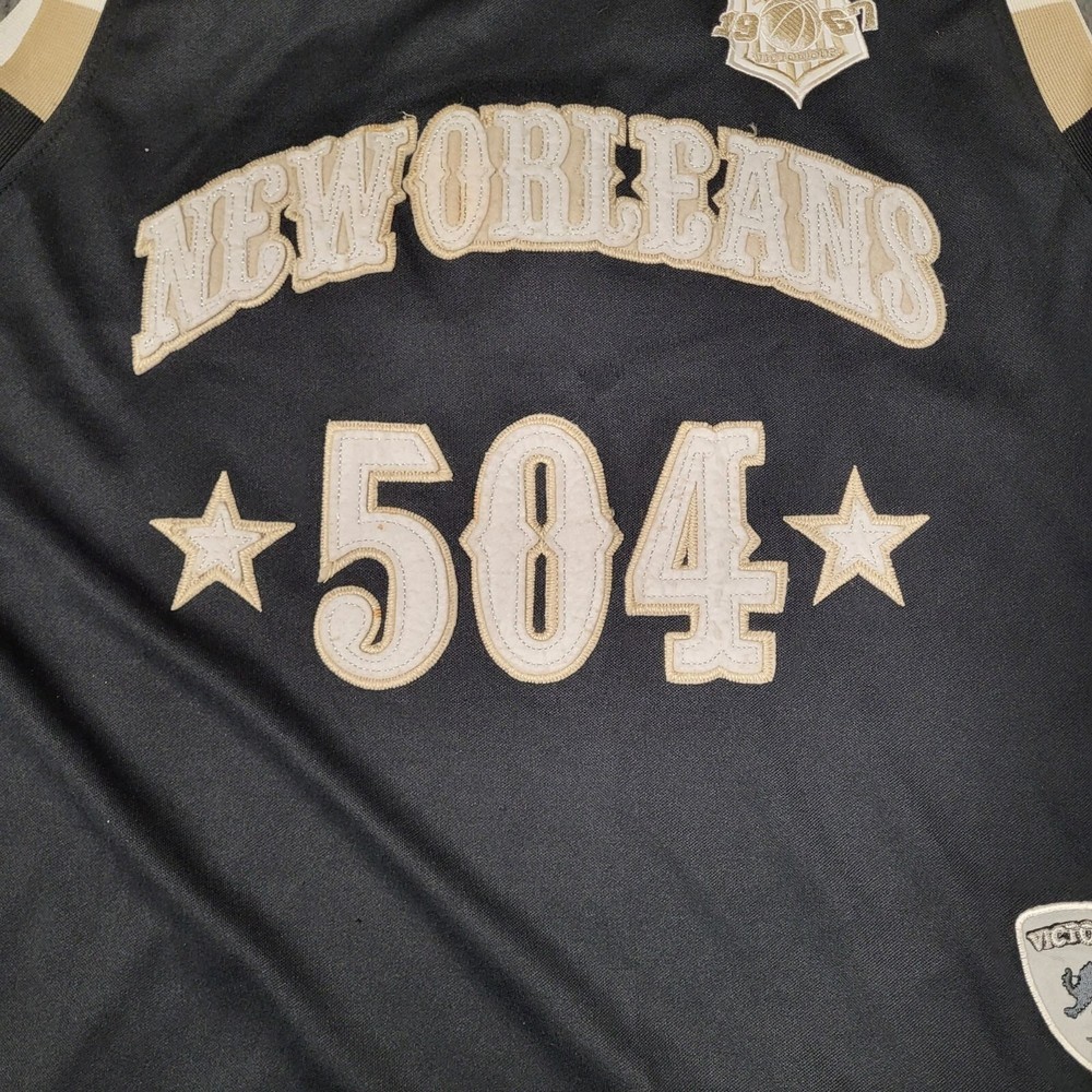 Stylish basketball jersey by Victorious, featuring New Orleans 504 design. Ideal for sports or casual wear. 100% polyester for comfort and durability. • New Orleans 504 design • 100% polyester • Comfortable and durable • Ideal for sports or casual wear • Size: 2XL • Made in Korea Top to bottom = 33 inches