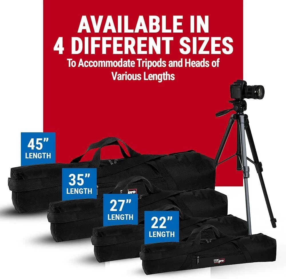 VidPro 35 inch Tripod Carrying Case with Strap for Bogen-Manfrotto, Sunpak, Vanguard, Slik, Giottos and Gitzo Tripods Item Description High-Quality Construction: Designed to protect your tripod from the elements and allow you to carry it with ease, the Vidpro TC-35 Tripod Carrying Case is crafted using heavy-duty Cordura-webbed nylon to supply long-term, reliable use. Sufficient Space: Vidpro’s TC-35 Tripod Carrying Case measures 4.5” H x 4.5” W x 35" L in size, designed to hold your tripod with head up to 35 inches in length. It’s also suitable for carrying light stands. Easy Carrying: For added convenience, this Tripod Carrying Case is equipped with carrying strap handles and a shoulder strap, allowing you to easily carry your tripod from one location to the next. Optimal Protection: Keep your tripod or light stand fully protected from dust and the weather. Vidpro’s TC-35 Tripod Carrying Case includes a full-length zippered closure for optimal protection, along with a zippered exterior pocket for other accessories. Customer Satisfaction: Our products not only reflect Vidpro’s cutting-edge technology, but also our commitment to providing people with quality and reliable products – emphasized by the extensive warranties we provide to ensure customer satisfaction. › See more product details Recognized in the Photo and Video Industry since 1956, Vidpro Corporation is a supplier and producer of high-quality video production equipment and accessories. In fact, after introducing numerous, modernized digital video and photo accessories to the market, we have been acknowledged as an innovator. From microphones and lighting, all the way through to digital camera carrying cases, bags, batteries, chargers, lenses, tripods and other professional accessories, Vidpro’s commitment to quality and client confidence is emphasized by the extensive assurances we provide to ensure you enjoy the use of our products for many years to come. The black Vidpro TC-35 Padded Tripod Carrying Case is designed to carry your tripod (including the head) up to 35 inches in length. It accommodates tripods from many brands, including Bogen-Manfrotto, Sunpak, Vanguard, Slik, Giottos and Gitzo. In addition to fitting tripods, it can be used for storing and transporting light stands as well. Vidpro’s TC-35 Tripod Carrying Case offers a safe and easy way to take your equipment on the road with you wherever you need to go. Not only does it allow you to transport your tripod and head with ease, but it also protects them from the weather, dust and other damage with its heavy-duty cordura webbed nylon and a full-length zippered closure. Easily carry your tripod or light stand from one photo shoot to the next. The black Padded Tripod Carrying Case can be held by hand with the attached carrying strap handles, or hung on your shoulder with its shoulder strap for easy carrying and portability. This Padded Tripod Carrying Case from Vidpro is made of heavy-duty cordura webbed nylon to supply long-term strength and reliable use year after year. Resistant to abrasions, tears and scuffs, the high-performance fabric is designed to hold up against everyday wear and tear, and is even able to withstand the elements. If you need to bring along other accessories with your tripod, no problem. In addition to its sufficient size, the Vidpro TC-35 Tripod Carrying Case is equipped with a large zippered exterior pocket to offer additional space for a cable release or other accessories. Payment We accept payment only through PAYPAL Shipping We ship products worldwide through standard express courier service, it will reach within 7 to 10 days to abroad buyers, we ship the product after recieved clear payment and give full information about shipment to the buyer Return We accept product return within 7 to 21 days from delivery date but product should be in original position and not in damaged condition,the return shipping charges will be buyer responsibility