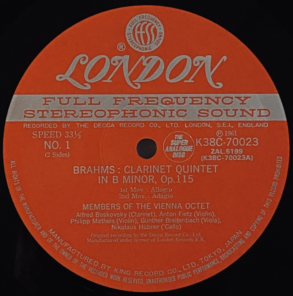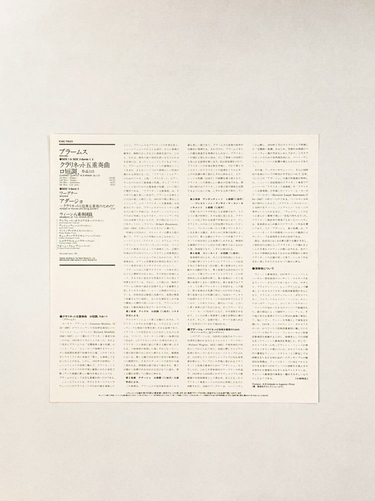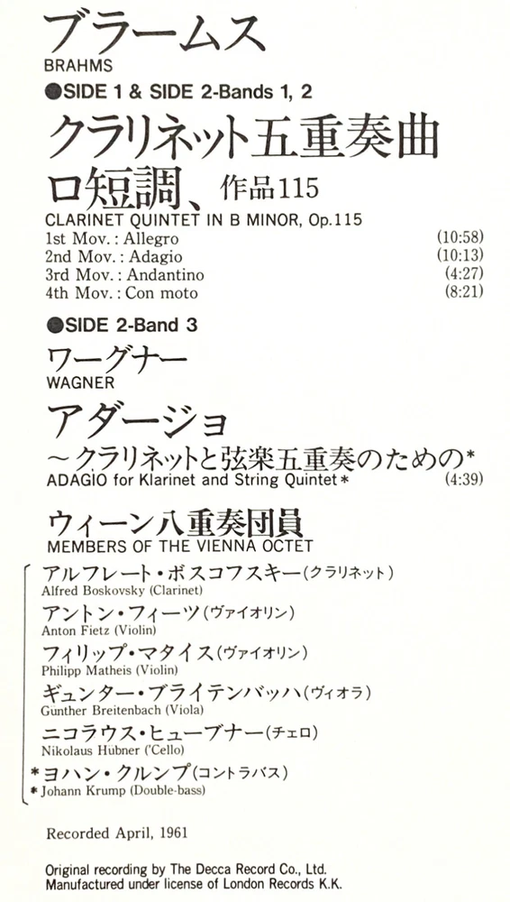 Vienna Octet Brahms Clarinet Quintet Vinyl LP with OBI Japan Press