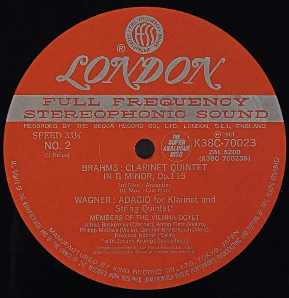 Style: Chamber music Material: Vinyl Case Type: Paper Sleeve Record Size: 12" Number of Audio Channels: Stereo Features: 180-220 gram Release Title: Brahms: Clarinet Quintet In B Minor, Op.115 / Wagner: Adagio Seller Notes: “Used: Please see "Item Description".” Color: Black Speed: 33 RPM Release Year: 1987 Era: 1960s Edition: Limited Edition, Japan Reissue Artist: Members Of The Vienna Octet Record Label: London Genre: Classical Format: Record Country/Region of Manufacture: Japan Type: LP