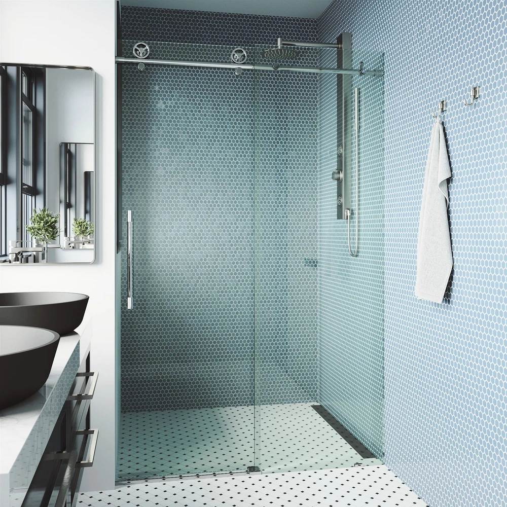 Powered by Frooition Top Products Kitchen Bathroom Lighting Fans Hardware Decor & Organization Vigo VG6044CL5276 Elan Cass 76" High x 52" Wide Sliding Frameless Shower Door with Clear Glass Overview Item Description Experience a quieter, more relaxing shower experience with The Cass Collection. With sleek lines, concealed screws, plus elevated heights, The Cass Collection by VIGO is home to a striking shower door. Inspired by the power and silence of the wind, this frameless glass shower door features sleek aerodynamic rollers that deliver smooth, air gliding open and closure. Rich finished hardware details add elegance to high-quality glass doors while the vertical door handle supports inviting walk-in shower entry. Choose between left or right-side opening for a custom installation. Innovative technology features ensure seamless, fast installation and a lifetime of use. Vigo VG6044CL5276 Features: Covered under Vigo's limited lifetime warranty Constructed of durable 3/8" thick tempered glass and complemented by stainless steel profiles and guide rails Coordinates with products from the Cass line A frameless design gives a modern, sleek look to the shower Sliding shower door operation acts as a space saver for smaller bathrooms This is a shower door only - a shower base and walls may be required to complete unit NOTE: The biggest challenge in selecting the correct shower door is determining the finished opening width - be sure your desired opening measures between the "Enclosure Width Range" note below Vigo VG6044CL5276 Specifications: Overall Height: 76" (bottom to top of door fixture) Overall Width: 52" (left to right of door fixture) Enclosure Width Range: 48" to 52" (range of enclosure sizes door will accommodate) Maximum Door Opening: 28" (assuming door is not trimmed) Glass Thickness: 3/8" Why Choose BuildInc? OUR PROMISE TO YOU About Us At Build, we promise to provide the best selection we can, most competitive pricing, and unmatched customer service. Our store has quality home improvement products from trusted manufacturers like Moen, American Standard, Delta, Kraus, Kichler, Progress Lighting, Schlage, Kwikset, Baldwin, Broan, NuTone, Air King, and Rev-A-Shelf. With over 200,000 home improvement products for you to choose from, we have just what you need to get your project done. Fast & Free Shipping We promise to make it our priority to get you your items as fast as we can. We ship from 440 warehouses around the country, ensuring that your product will get to you as soon as possible. We know you're eager to get your hands on your new purchase, we would be too. As a bonus, most items ship for free. Returns We are happy to accept returns of unused or defective items for a refund within 30 days from the date of delivery. For returns outside 30 days, please contact our Customer Service team to go over our options. For full details, please view the Shipping and Payments tab above. To initiate a return simply go to the eBay Returns Portal and submit a return request. We ask that all items be returned with all original components via a traceable method. Once your return is received and processed, we will quickly get your refund or replacement issued. If for any reason you are unsatisfied with your purchase or for product or warranty questions, please contact Customer Service team for assistance. More Items! View more great items Elco ELK3341 The Koto System 3" Square Reflector Trim - White $43.56 Eurofase Lighting 46772 Atomo 56"W 3000K LED Abstract Linear - Gold $2,294.00 JONATHAN Y Lighting SMB109-8SQ Santa Monica 7-3/4' x 7-3/4' - MultiColor $110.40 Livex Lighting 49866 Calinda 7 Light 25"W Drum Chandelier - Gold $1,069.90 About Us | Shipping | Returns | Contact Us | FAQ | Collections | Special Offers! Powered by Frooition Frooition Frooition | No-js Template | eBay design, eBay store design, eBay shop design, eBay template design, eBay listing design (ver:froo_no_js) This listing is currently undergoing maintenance, we apologize for any inconvenience caused.