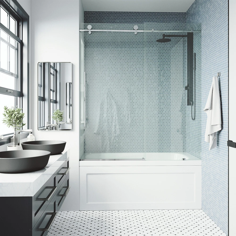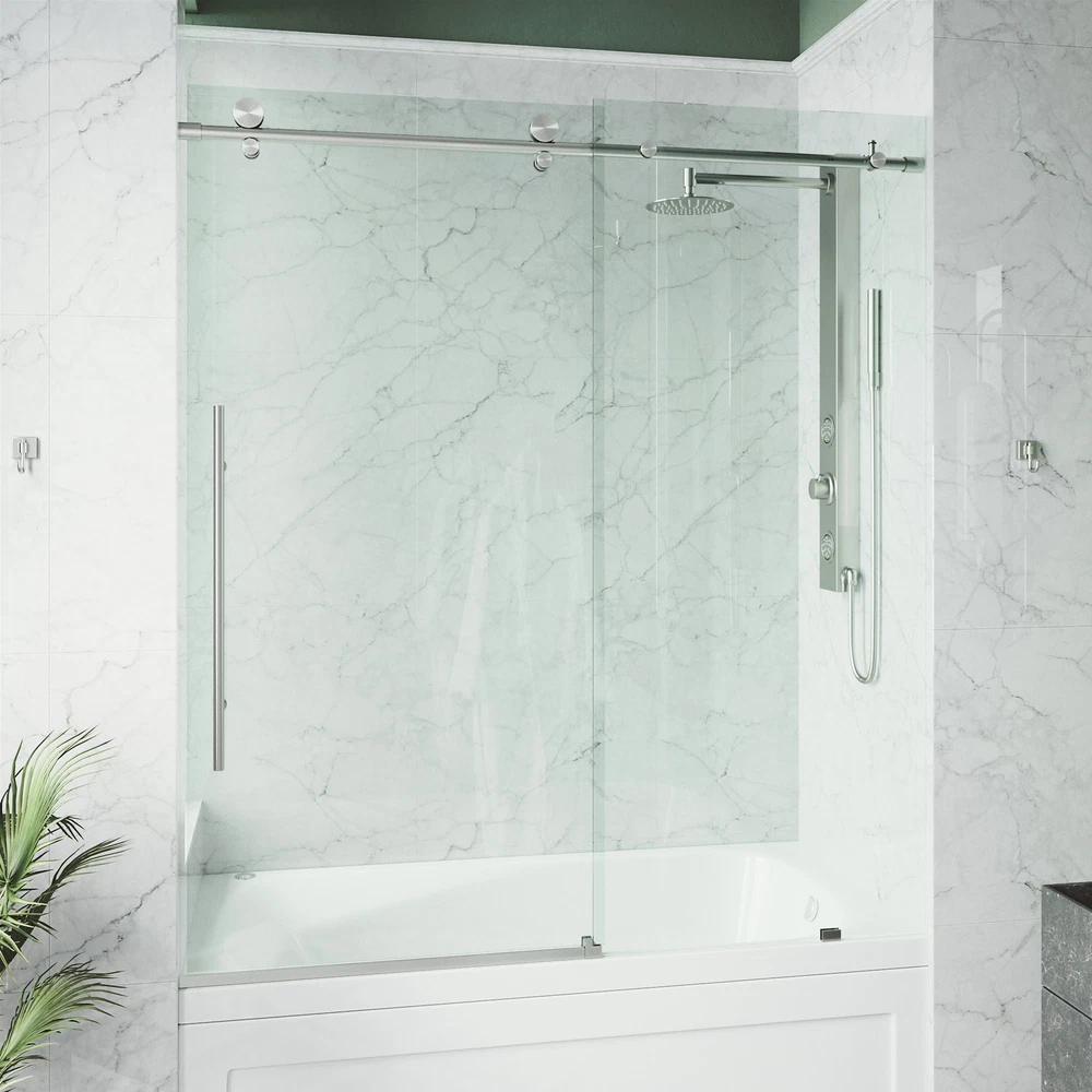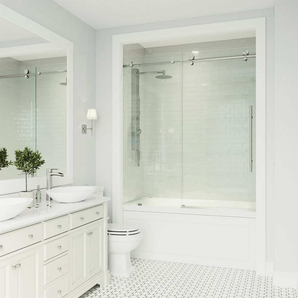 Powered by Frooition All Categories Vigo VG6021CL6066 Elan E-Class 66" High x 60" Wide Sliding Frameless Tub Door with Clear Glass Overview Item Description Vigo VG6021CL6066 Features: Covered under Vigo's limited lifetime warranty and 1 year limited commercial warranty Constructed of durable 3/8" thick tempered glass and complemented by stainless steel profiles and guide rails Coordinates with products from the Elan line A frameless design gives a modern, sleek look to the shower Sliding shower door operation acts as a space saver for smaller bathrooms Door opens to the left or right depending upon installation configuration All hardware required for installation of shower door is included This is a shower door only - a shower base and walls may be required to complete unit NOTE: The biggest challenge in selecting the correct shower door is determining the finished opening width - be sure your desired opening measures between the "Enclosure Width Range" note below Vigo VG6021CL6066 Specifications: Overall Height: 66" (bottom to top of door fixture) Overall Width: 60" (left to right of door fixture) Enclosure Width Range: 56" to 60" (range of enclosure sizes door will accommodate) Maximum Door Opening: 32" (assuming door is not trimmed) Opening Direction: Reversible Glass Thickness: 3/8" Why Choose BuildInc? OUR PROMISE TO YOU About Us At Build, we promise to provide the best selection we can, most competitive pricing, and unmatched customer service. Our store has quality home improvement products from trusted manufacturers like Moen, American Standard, Delta, Kraus, Kichler, Progress Lighting, Schlage, Kwikset, Baldwin, Broan, NuTone, Air King, and Rev-A-Shelf. With over 200,000 home improvement products for you to choose from, we have just what you need to get your project done. Fast & Free Shipping We promise to make it our priority to get you your items as fast as we can. We ship from 440 warehouses around the country, ensuring that your product will get to you as soon as possible. We know you're eager to get your hands on your new purchase, we would be too. As a bonus, most items ship for free. Returns We are happy to accept returns of unused or defective items for a refund within 30 days from the date of delivery. For returns outside 30 days, please contact our Customer Service team to go over our options. For full details, please view the Shipping and Payments tab above. To initiate a return simply go to the eBay Returns Portal and submit a return request. We ask that all items be returned with all original components via a traceable method. Once your return is received and processed, we will quickly get your refund or replacement issued. If for any reason you are unsatisfied with your purchase or for product or warranty questions, please contact Customer Service team for assistance. More Items! View more great items! About Us | Shipping | Returns | Contact Us | FAQ | Collections | Special Offers! Powered by Frooition Frooition Frooition | No-js Template | eBay design, eBay store design, eBay shop design, eBay template design, eBay listing design (ver:froo_no_js) This listing is currently undergoing maintenance, we apologize for any inconvenience caused.