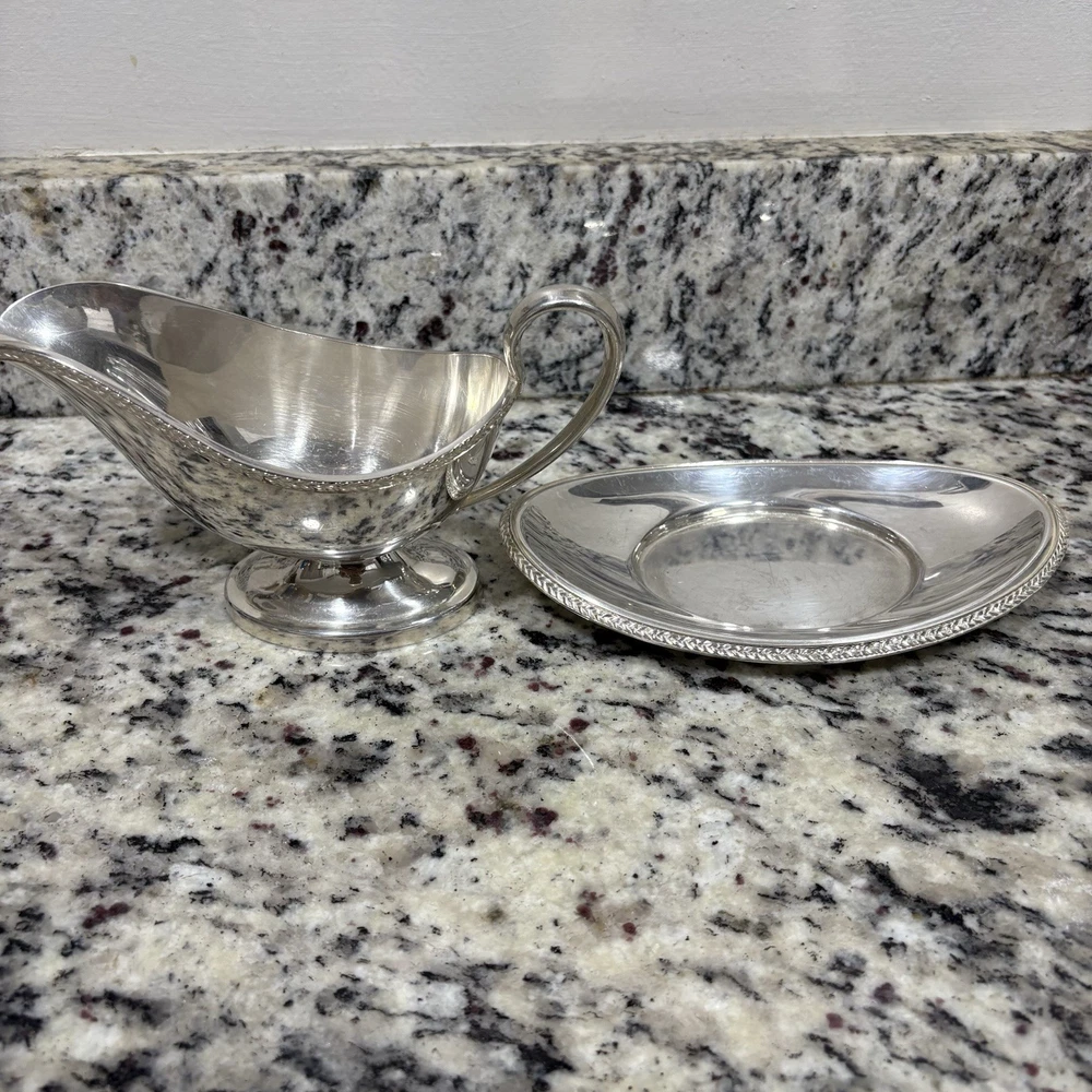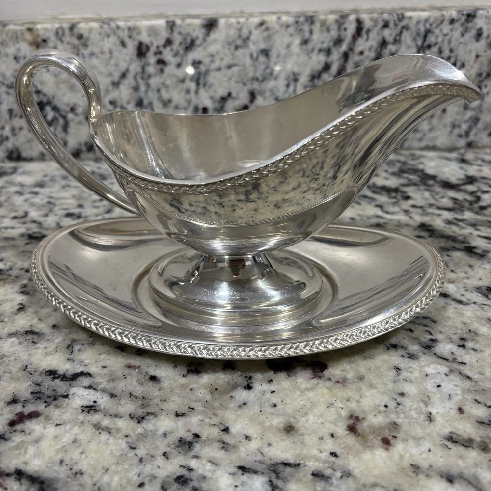 Viking Silver Gravy Boat & Underplate -VTG -20th Century- 2 Pieces- Detailed Rim Please feel free to make an offer on anything that i have listed. Thanks for viewing- take care! Cross posted.