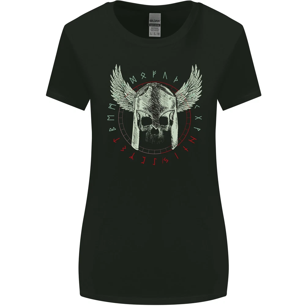 Viking Skull Wings Runic Text Gym Helmet Womens Wider Cut T-Shirt