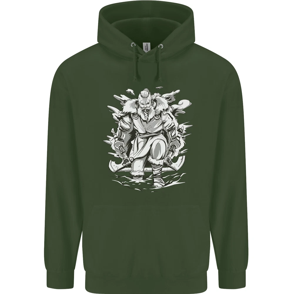 Viking Warrior Valhalla Odin Axe Gym God Mens 80% Cotton Hoodie