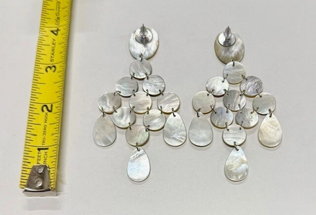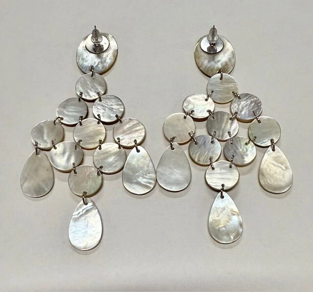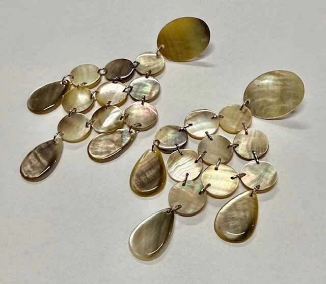 From the Collection of Viktoria Hayman. Get glowing and showing! It’s easy when you wrap up your look with the head-turning radiance of these shell- sun kissed, Mother-of-Pearl Chandelier Earrings, in a stunning Taupe color! The earrings feature round and teardrop-shaped mother of pearl stones in a brilliant iridescent finish. The Lobe Shell is Larger and Oval. They have a post or stud closure and measure 4 inches in length. The design is elegant and timeless, the chandelier style is a classic. The iridescent sparkle of the natural mother of pearl is amazing and the silver tone metal tieing the individual pieces all together adds a touch of sophistication to any outfit. These earrings are ideal for a Bridal Party or Wedding Reception. They would make a Great Gift for the Bride, The Bridesmaids, The Mother of The Bride, The Maid Of Honor and even The Wedding Guests. Having Bachelorette Party- Make the night sparkle!!!! These earrings are normally $155.00 each pair- you can see the price on line. We are offering a great deal on a bundle of Ten Pairs in white mother of pearl as well. We will also include packing and shipping. Free USA Shipping!. Local Collection is also available in Boca Raton FLorida. Need more- just ask! Small variations can happen in the product due to the handmade, manual process. Color and finish variations are expected. Cleaning - Use dry cloth, preferably cotton, to prevent surface scratches. Avoid tumbling and prolonged contact with alcohol, perfume, cosmetics and salt chlorinated water.