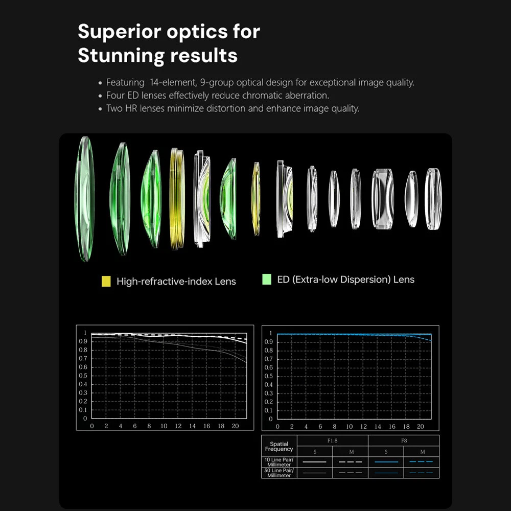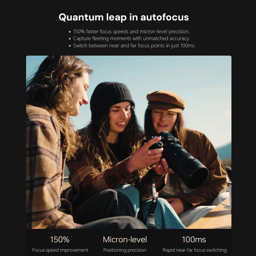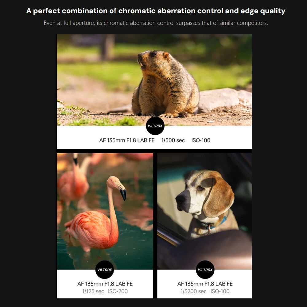 Viltrox AF 135mm F1.8 LAB Full Frame Lens For Sony E-Mount New IN STOCK Outstanding Resolution Maintains sharpness from center to edges across the focal range, capturing fine textures even at maximum aperture. Efficient Autofocus Equipped with patented HyperVCM motor for fast, precise, and quiet autofocus—perfect for capturing fleeting moments. F1.8 Aperture & Dreamy Bokeh The 11-blade aperture creates soft, beautiful background bokeh, with excellent low-light clarity. Professional Control Features Lens Mount: E-mount Lens Elements : 9/4 Focal Length: 135mm Viewing Angle: 19.04° Aperture: F1.8-F16 Number of Aperture Blades: 11 Shooting Distance: 0.72m-∞ Focus Mechanism: Internal focus Focus Motor: VCM Focus Mode : MF,AF Max.magnification : 0.25x Lens Size: Φ93x145.7mm Weight : ≈1235g(bare lens) Filter Size: Φ82mm