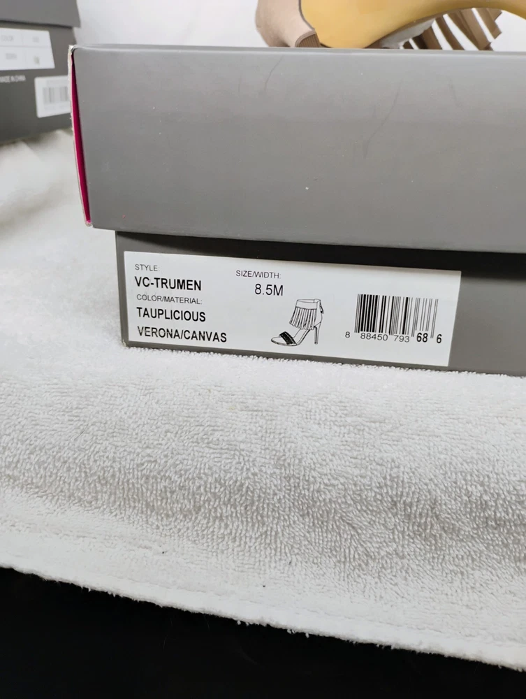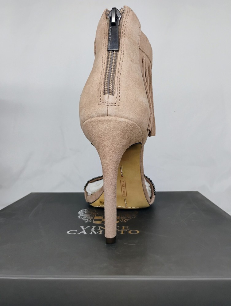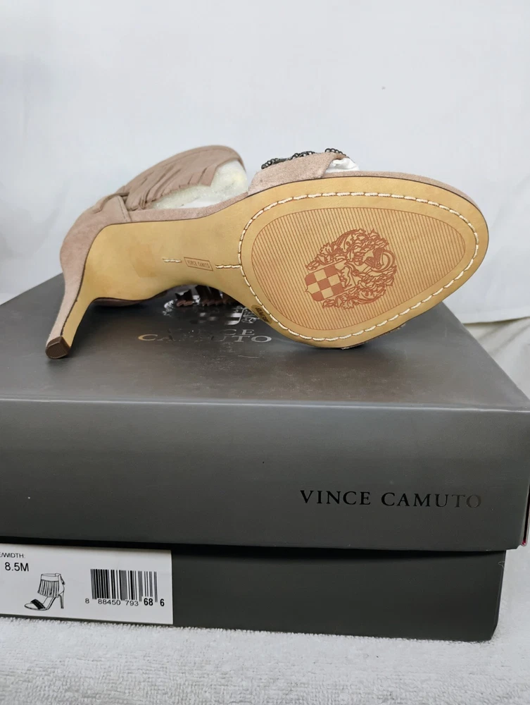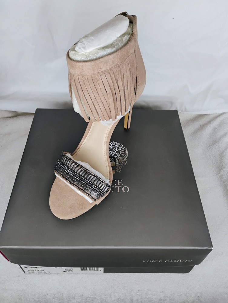 Vince Camuto "Trumen" Heel in Tauplicious is a beautiful shoe. The suede fringe is so chic and the beaded strap across the top of your foot makes for a very stylish and sexy shoe. These are brand new in box, never worn and size 8.5m. PLEASE MAKE AN OFFER ALL REASONABLE OFFERS WILL BE CONSIDERED. Also available for local pickup in Sun City Arizona.